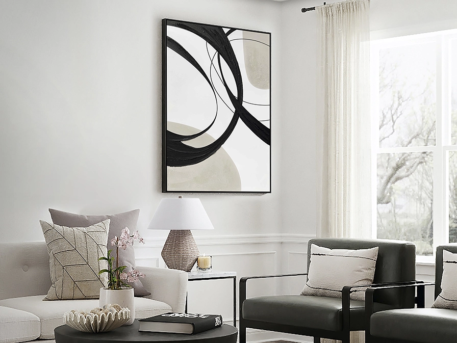 Actio II pintura realizada em acrílico, montado sobre bastidor. Moldura de poliestireno preto. Preparado para pendurar em posição horizontal ou vertical.