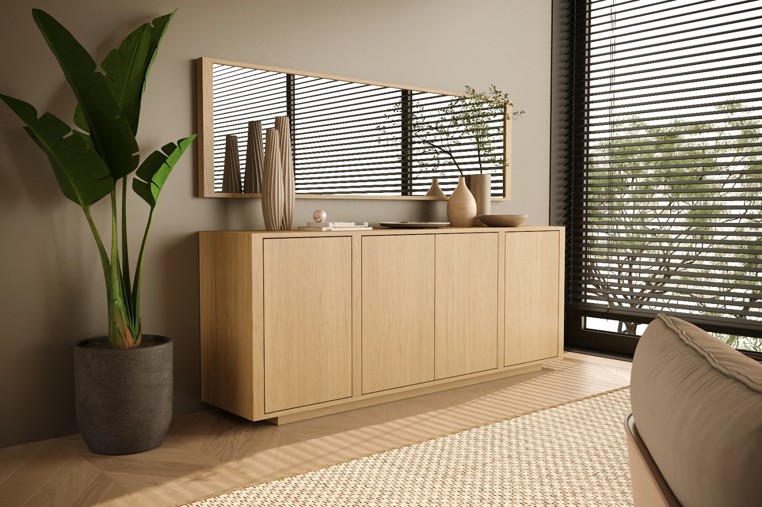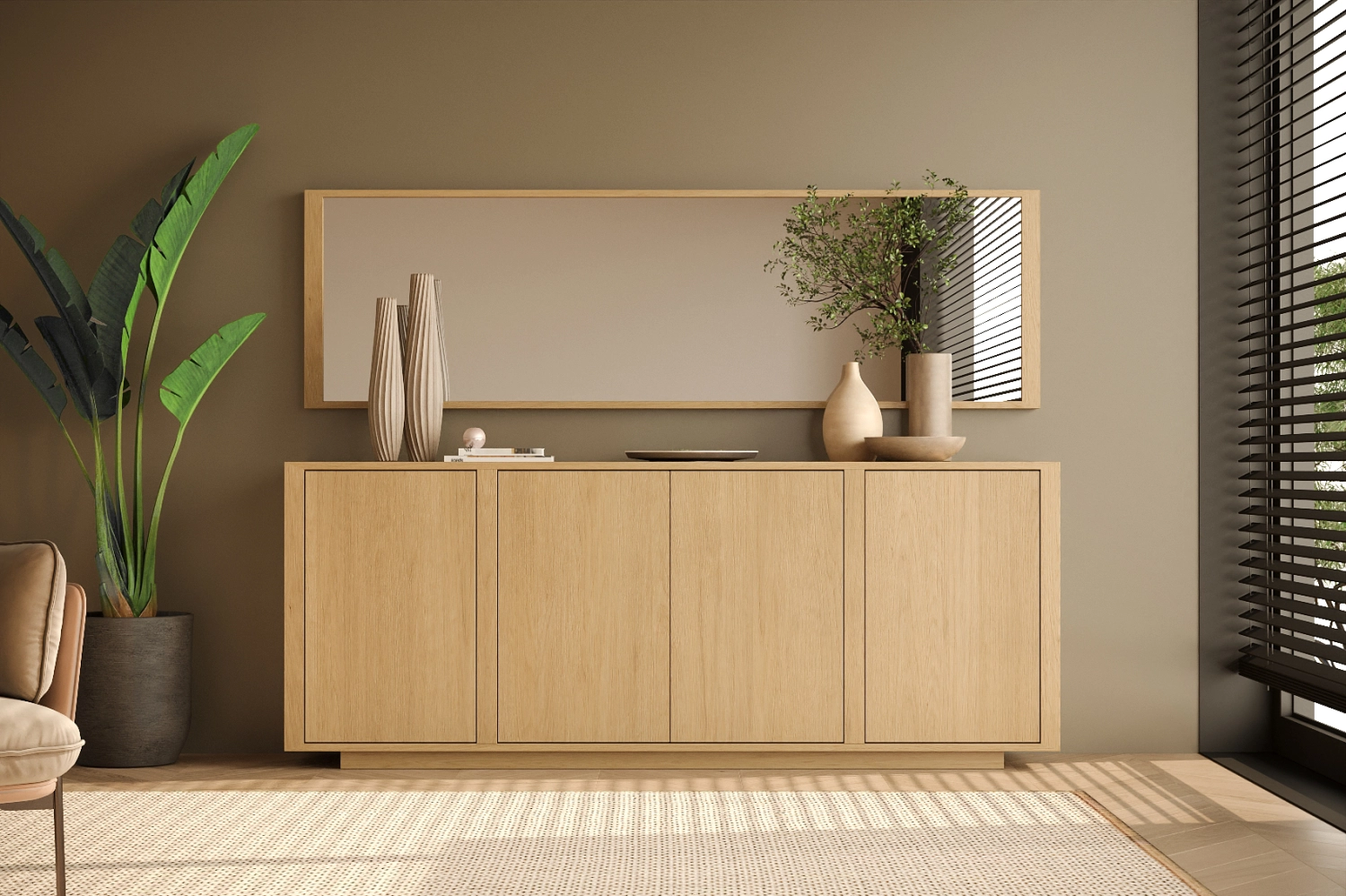 Aparador com espelho Dual fabricado em folha de madeira natural ou MDF Lacado