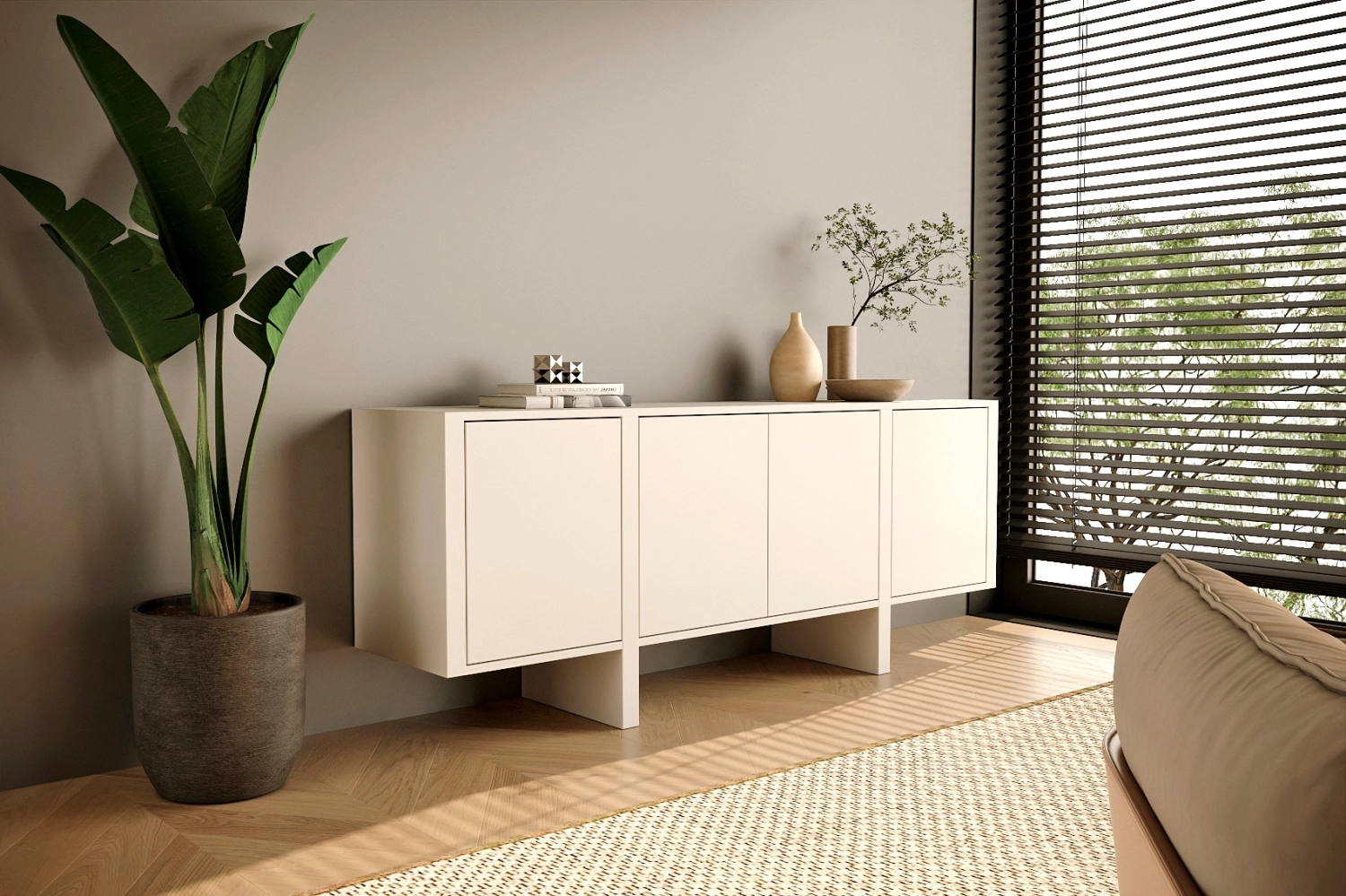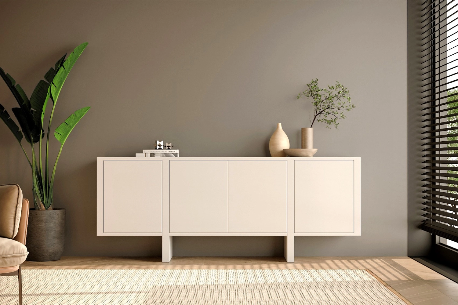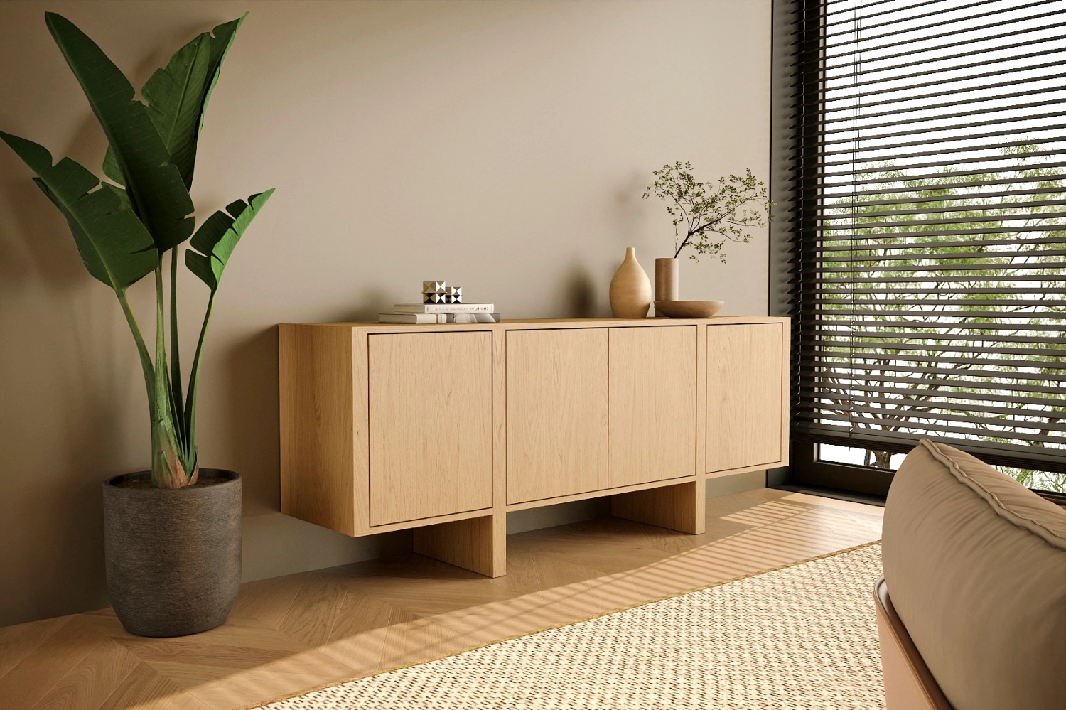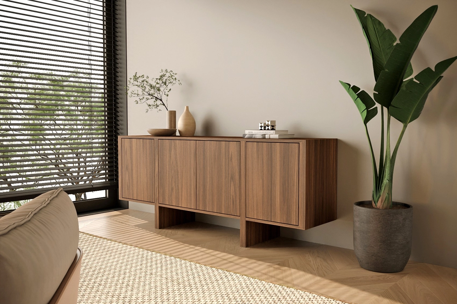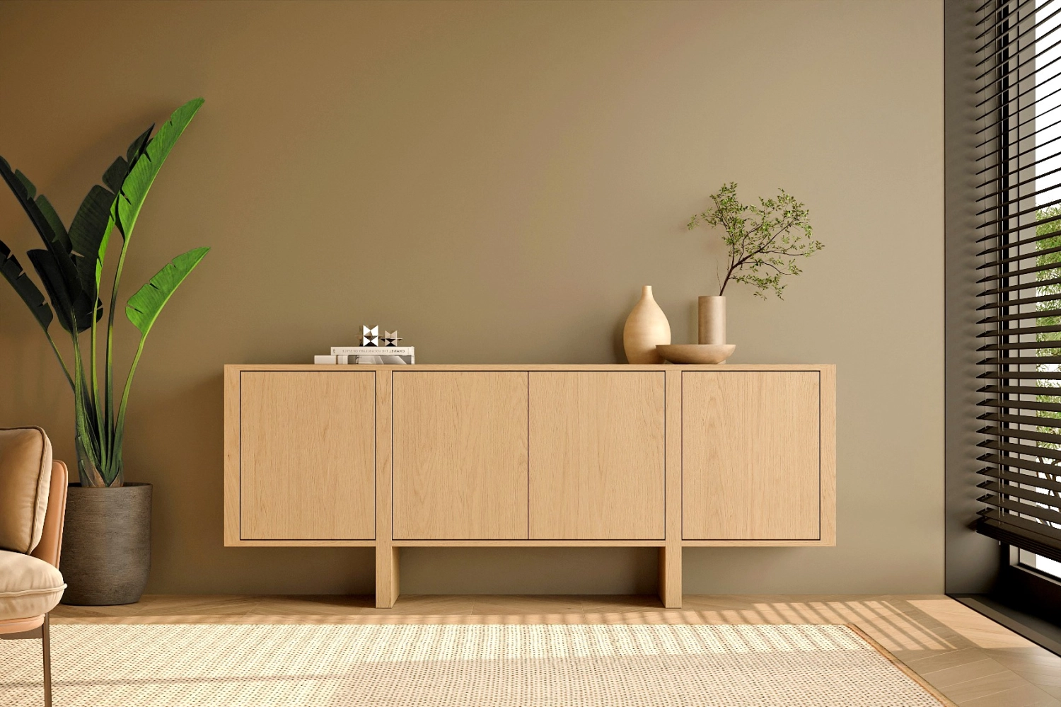 Aparador Dual com pés fabricado em folha de madeira natural ou MDF Lacado.