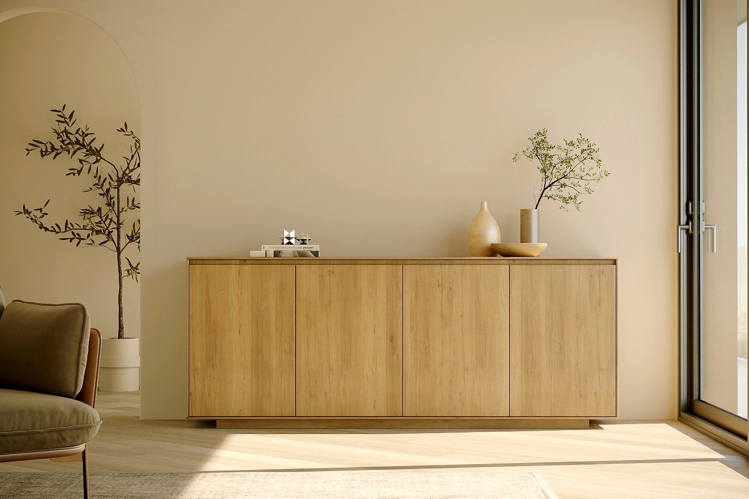Aparador Nórdico fabricado em folha de madeira natural ou MDF Lacado
