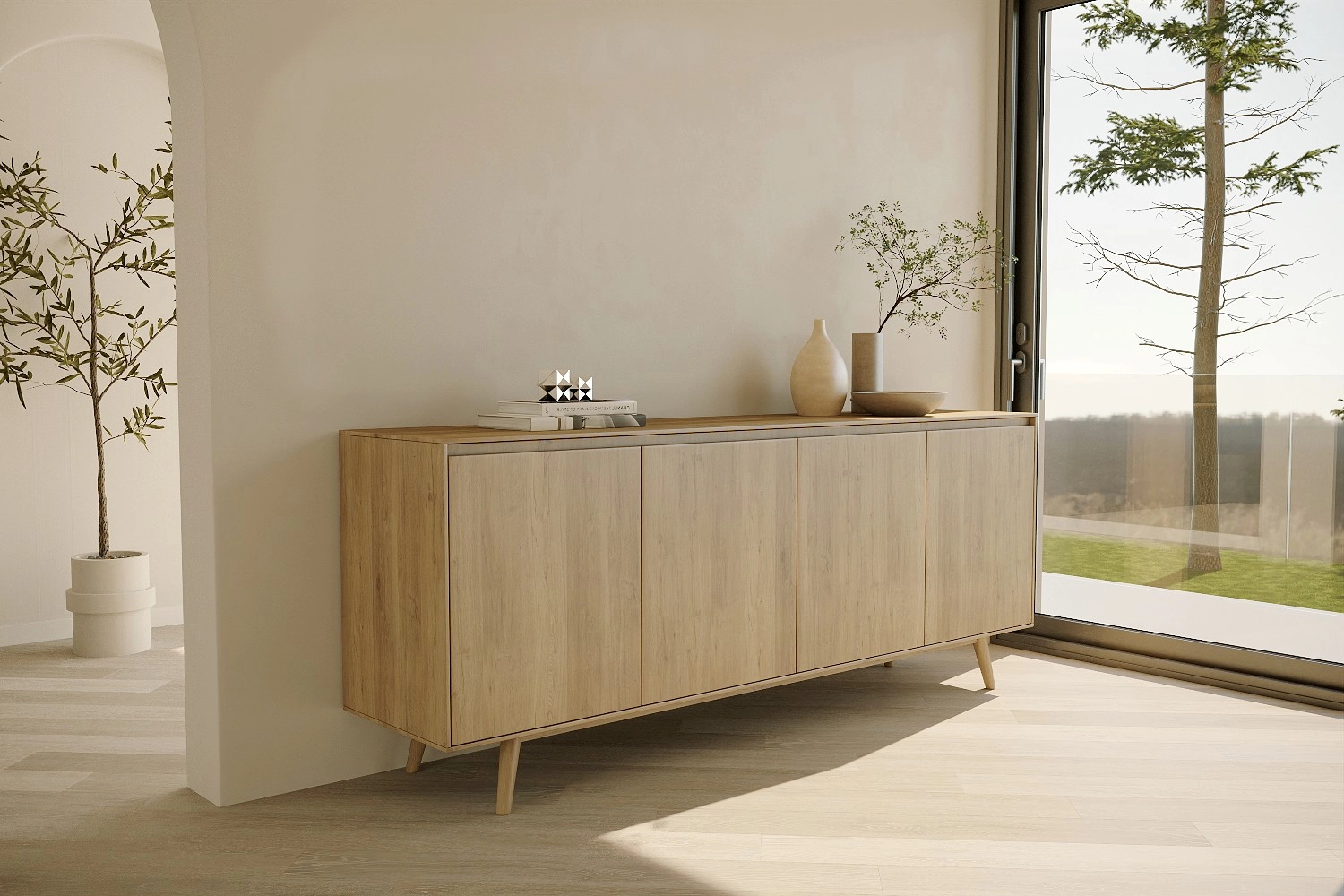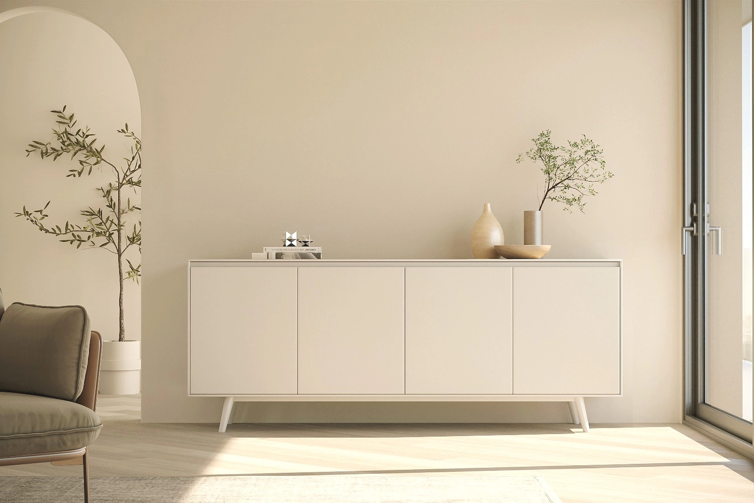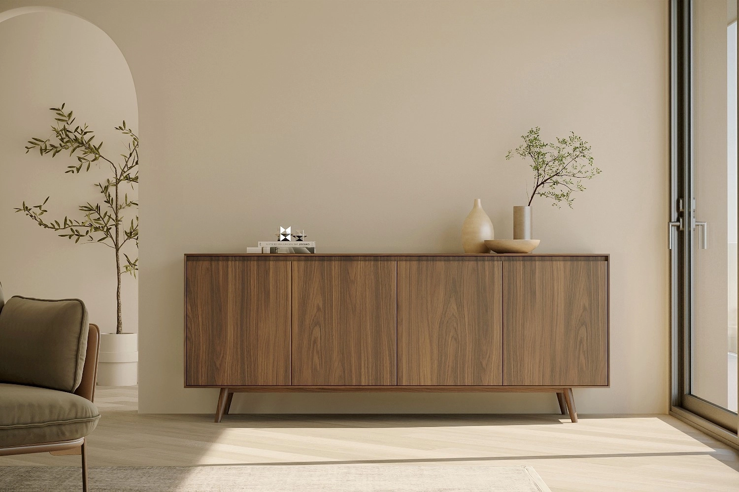 Aparador Nórdico com pés fabricado em folha de madeira natural ou MDF Lacado