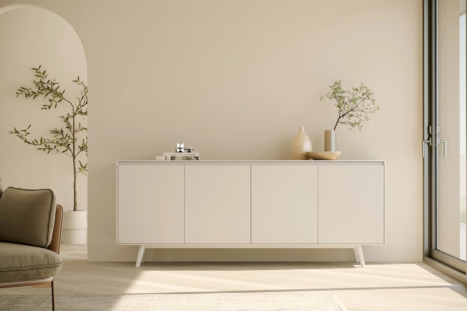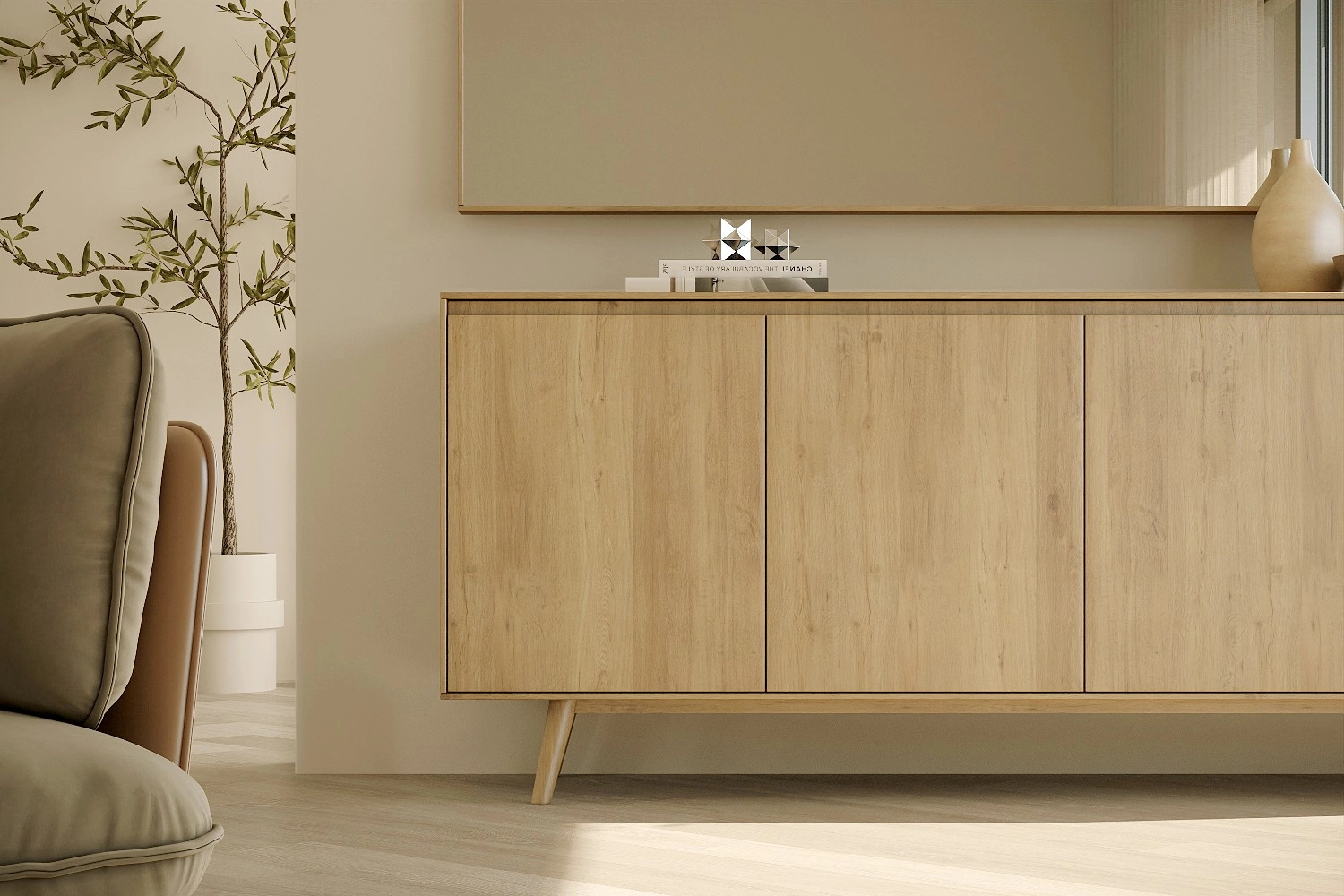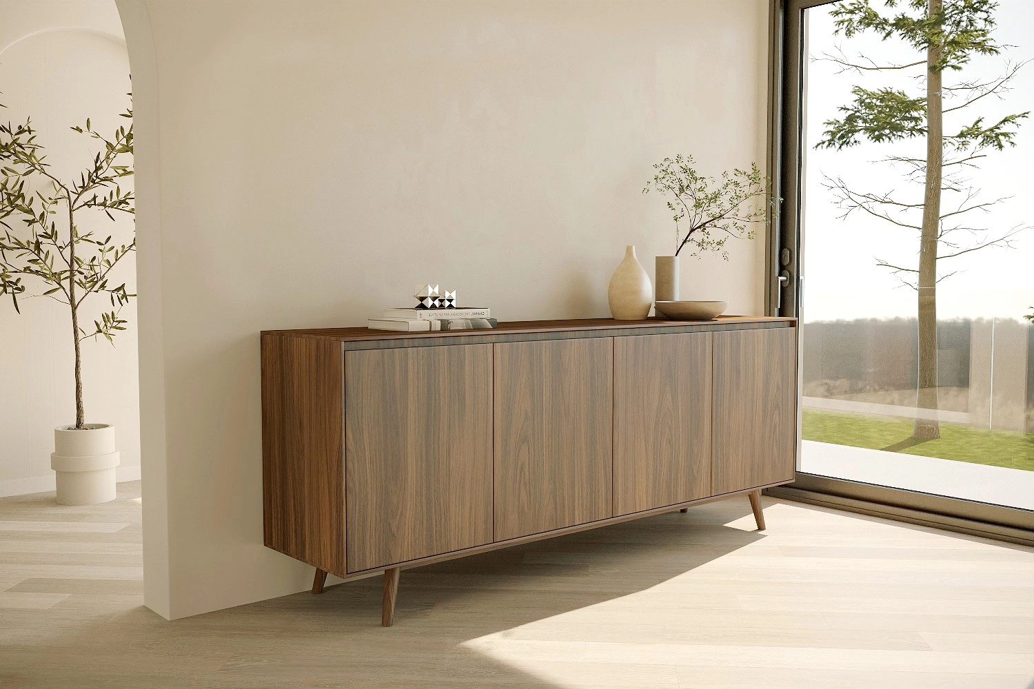 Aparador Nórdico com pés fabricado em folha de madeira natural ou MDF Lacado