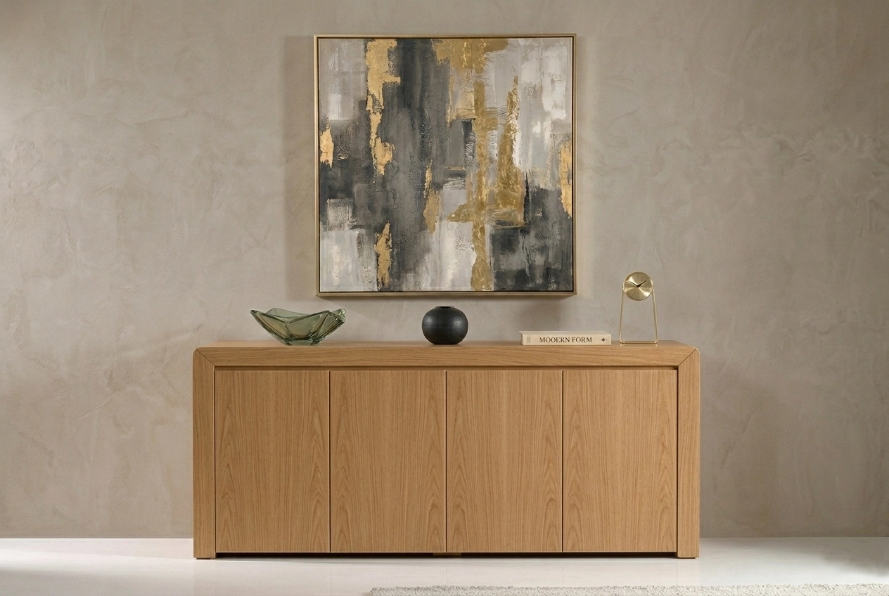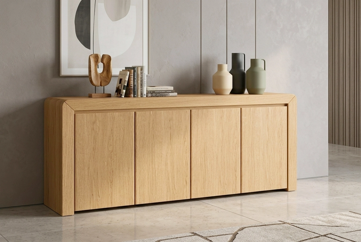 Este móvel é fabricado em folha de madeira natural e MDF para opções de acabamento lacado.