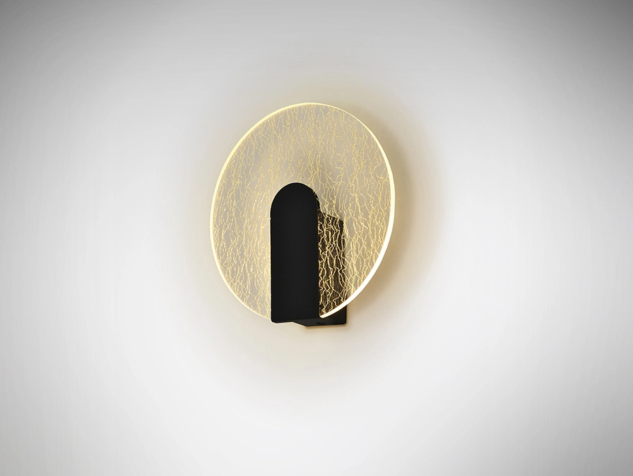 Candeeiro de parede realizado em metal e alumínio, acabamento preto mate.