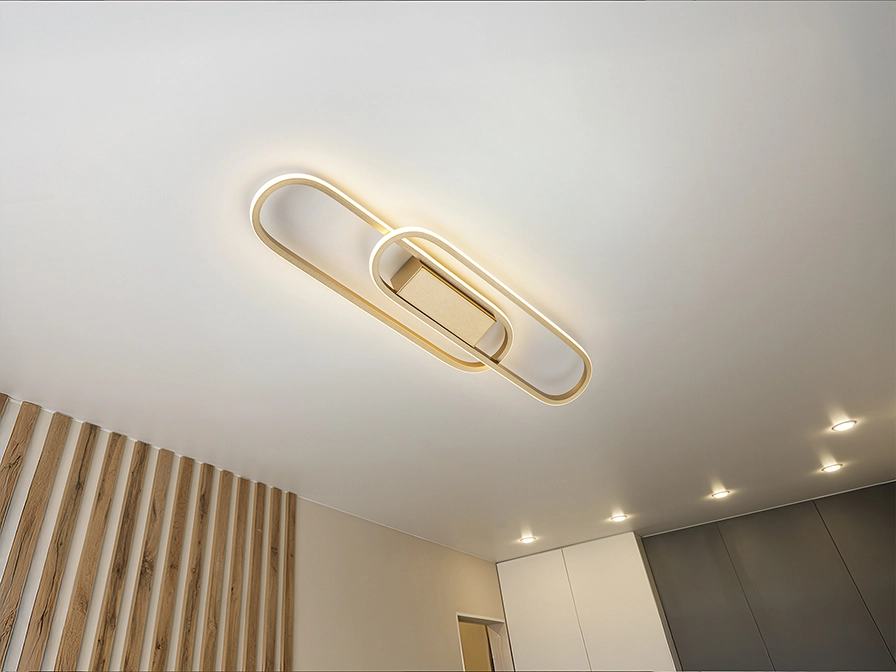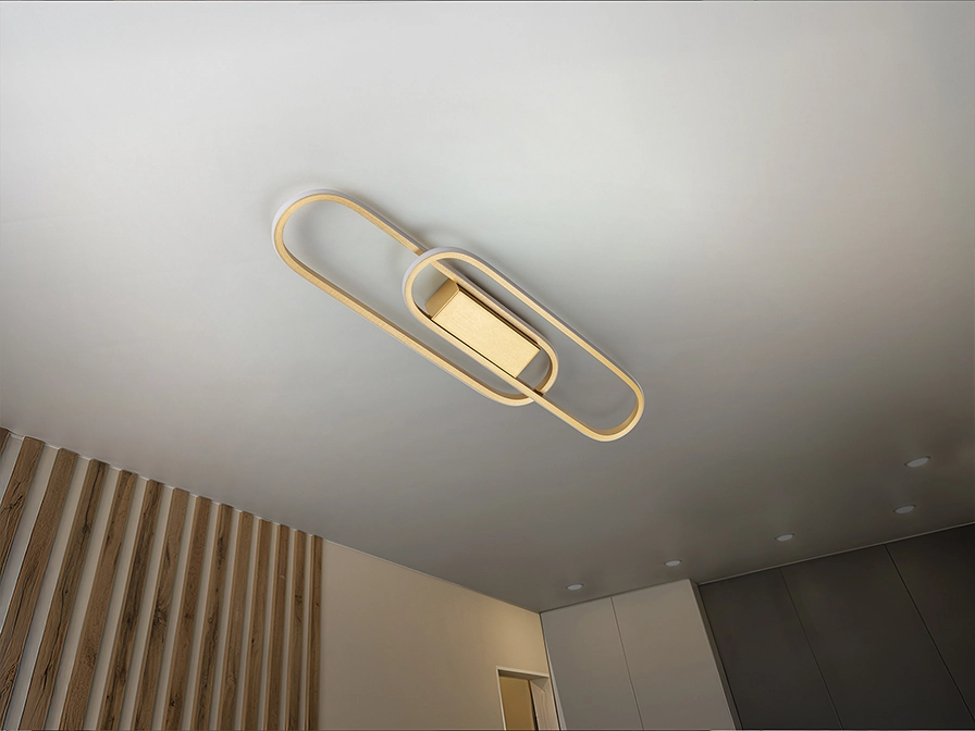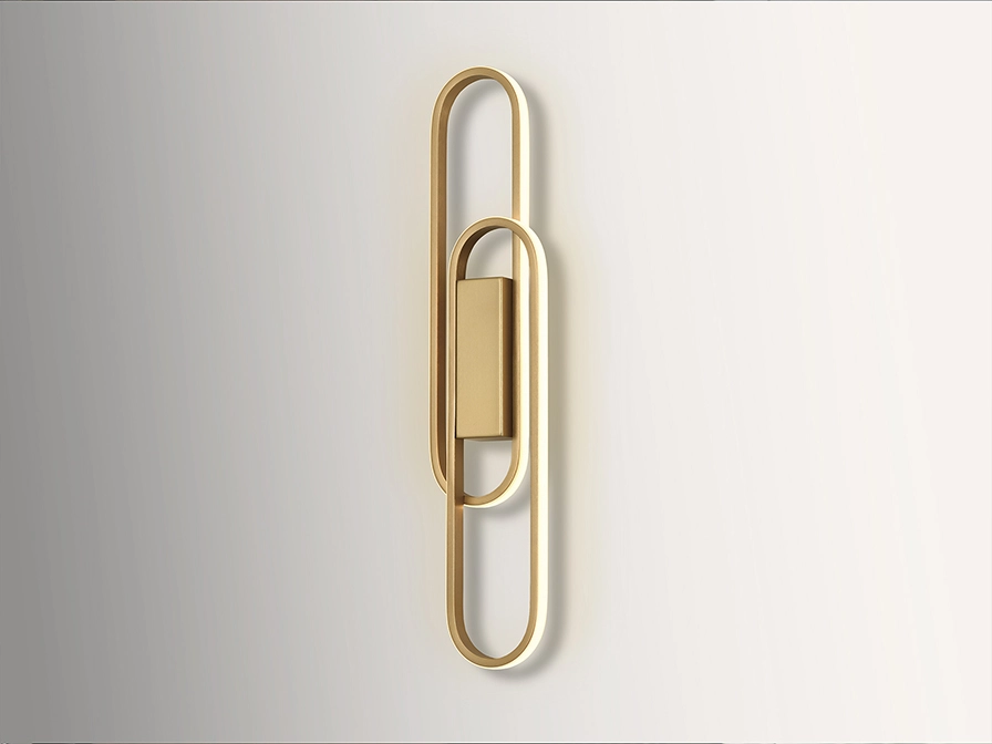 Candeeiro de parede, realizado em alumínio, metal acabamento dourado mate.