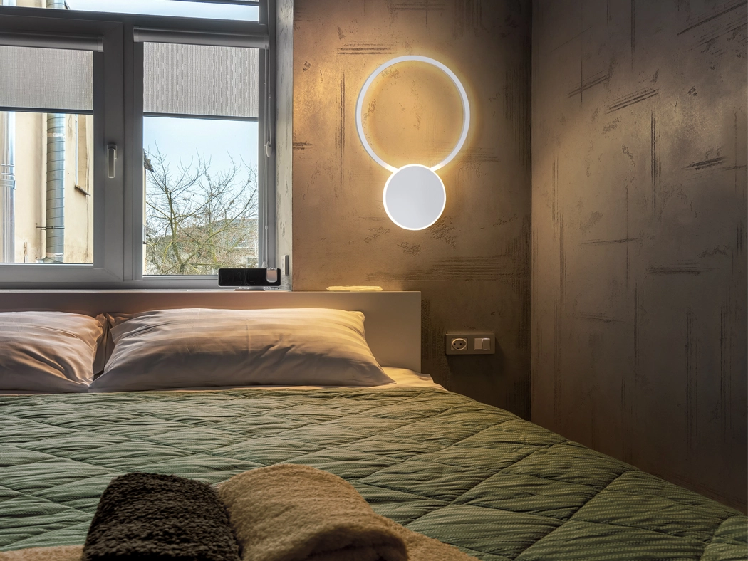Candeeiro de parede, realizado em alumínio, metal acabamento preto ou branco mate.