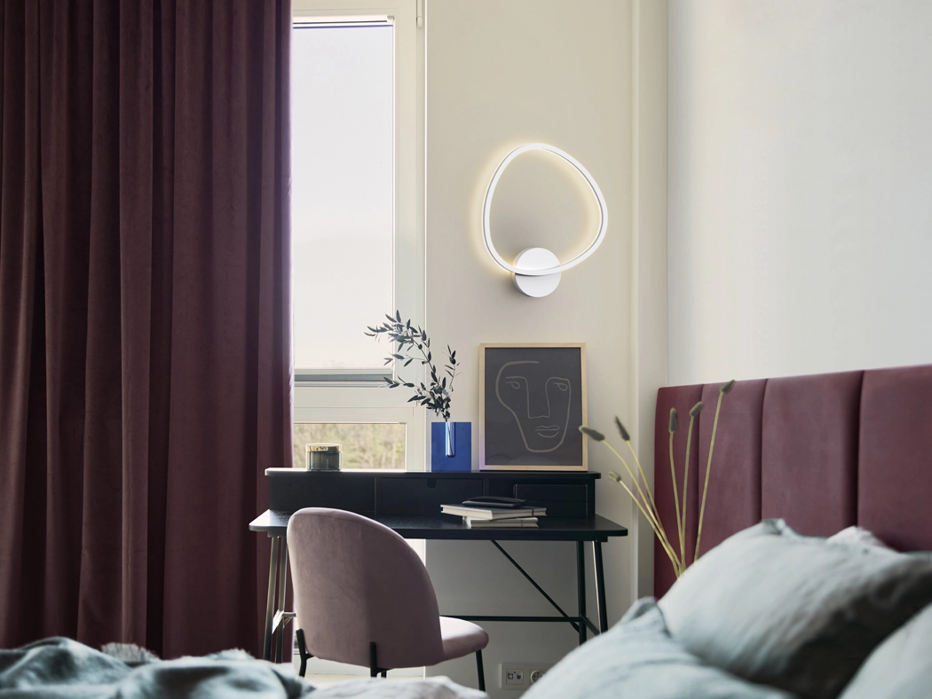 Candeeiro de parede, realizado em alumínio acabamento preto ou branco mate.