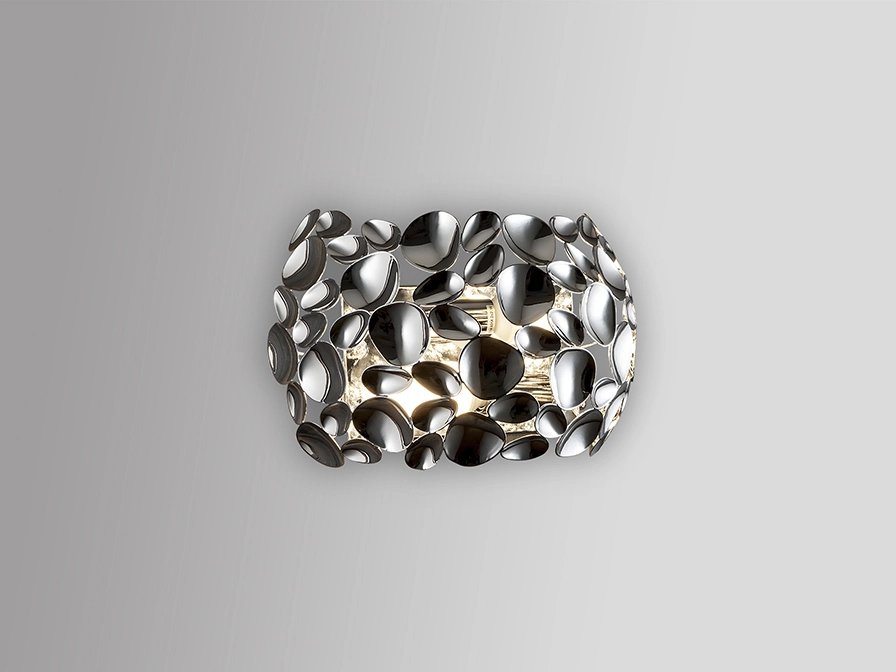 Candeeiro de parede de 2 luzes realizado em metal cromado.