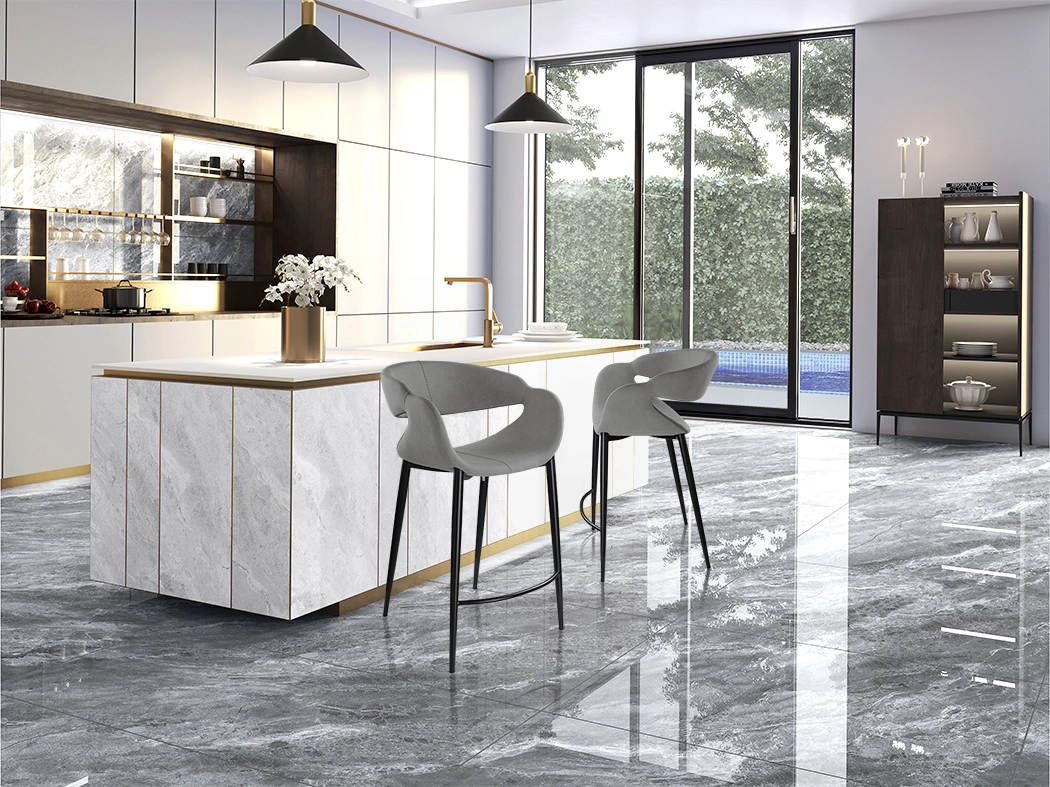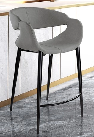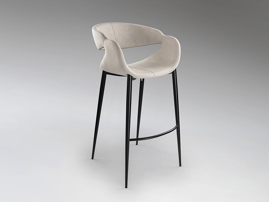 Pés metálicos em acabamento preto mate com apoio para os pés.