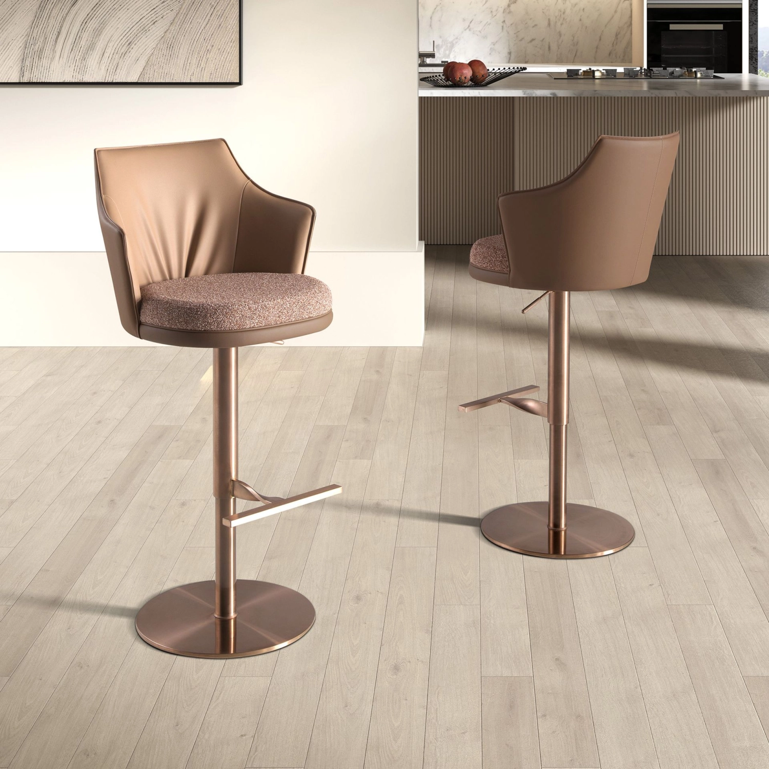 - Design ouro rosa sofisticado para ilhas de cozinha