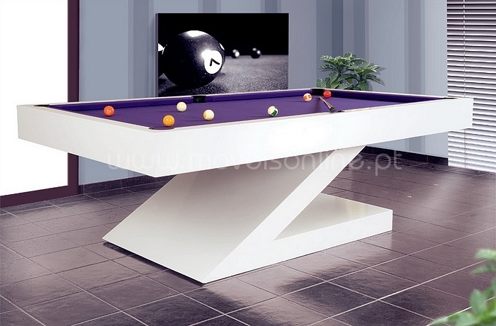 Medida exterior: C 245 X L 135 X A 80 cmÁrea de jogo: C 220 X L 110 cmÉ possível fazer com outras medidas internacionais.Materiais: Estrutura em ferro revestida a madeira e tabuleiro em ardósia.Oferta: 8 tacos e suporte, bolas, giz, triângulo e escova.