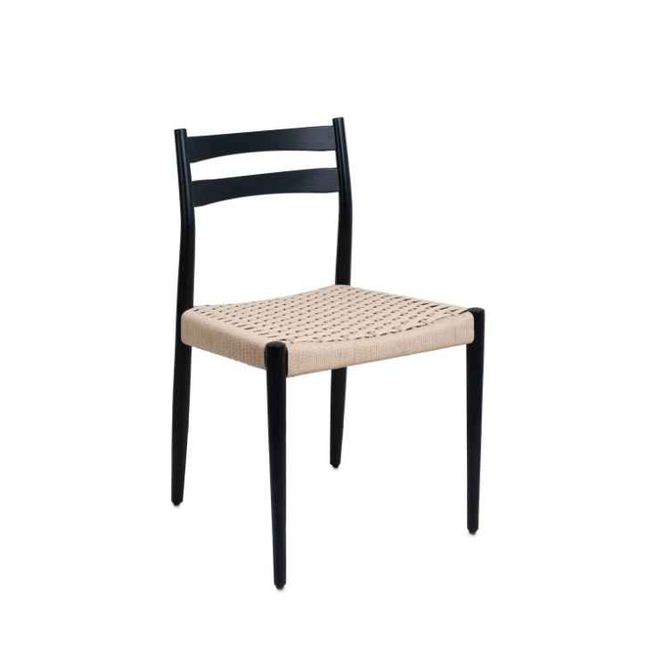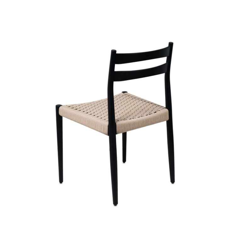 Assento com corda de cor natural, cria um contraste visual equilibrado.