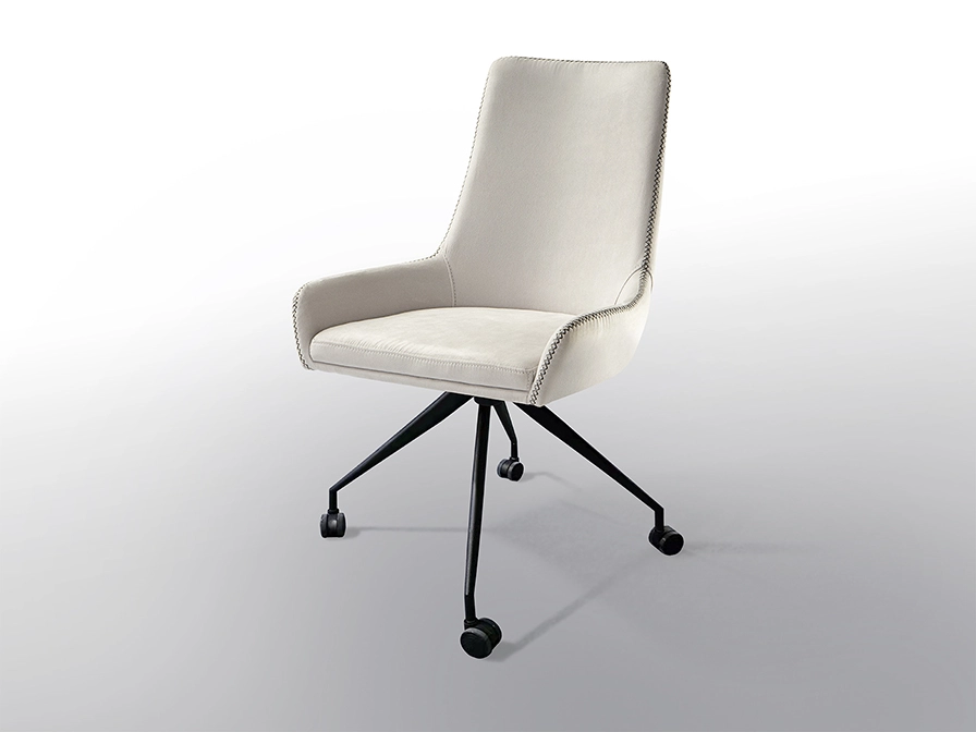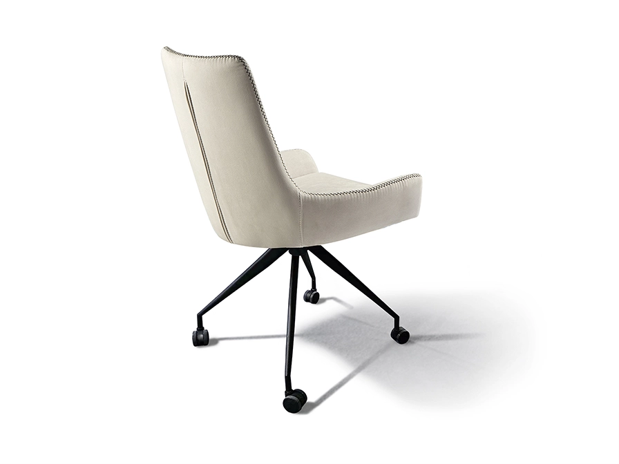 Cadeira com rodas giratórias, em metal, acabamento preto mate.