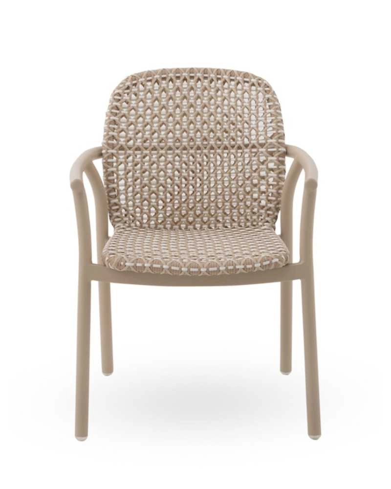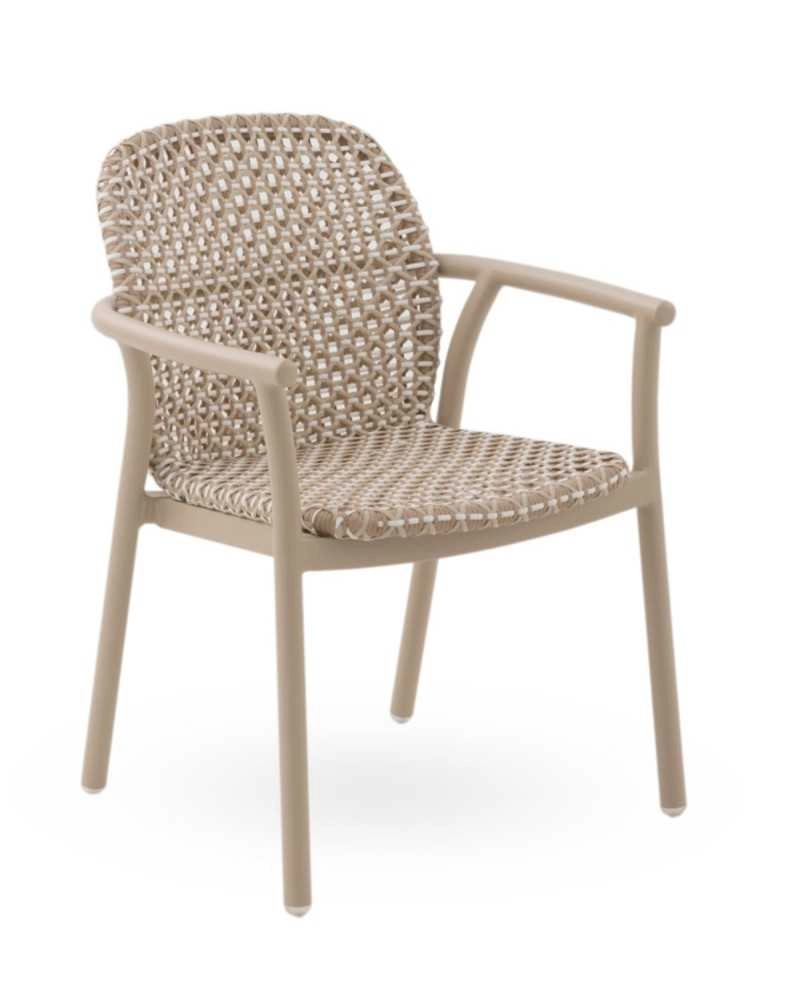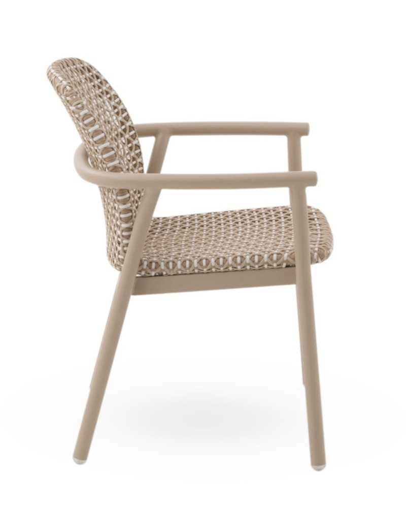 Cadeira em alumínio cor areia e fibra sintética bicolor.