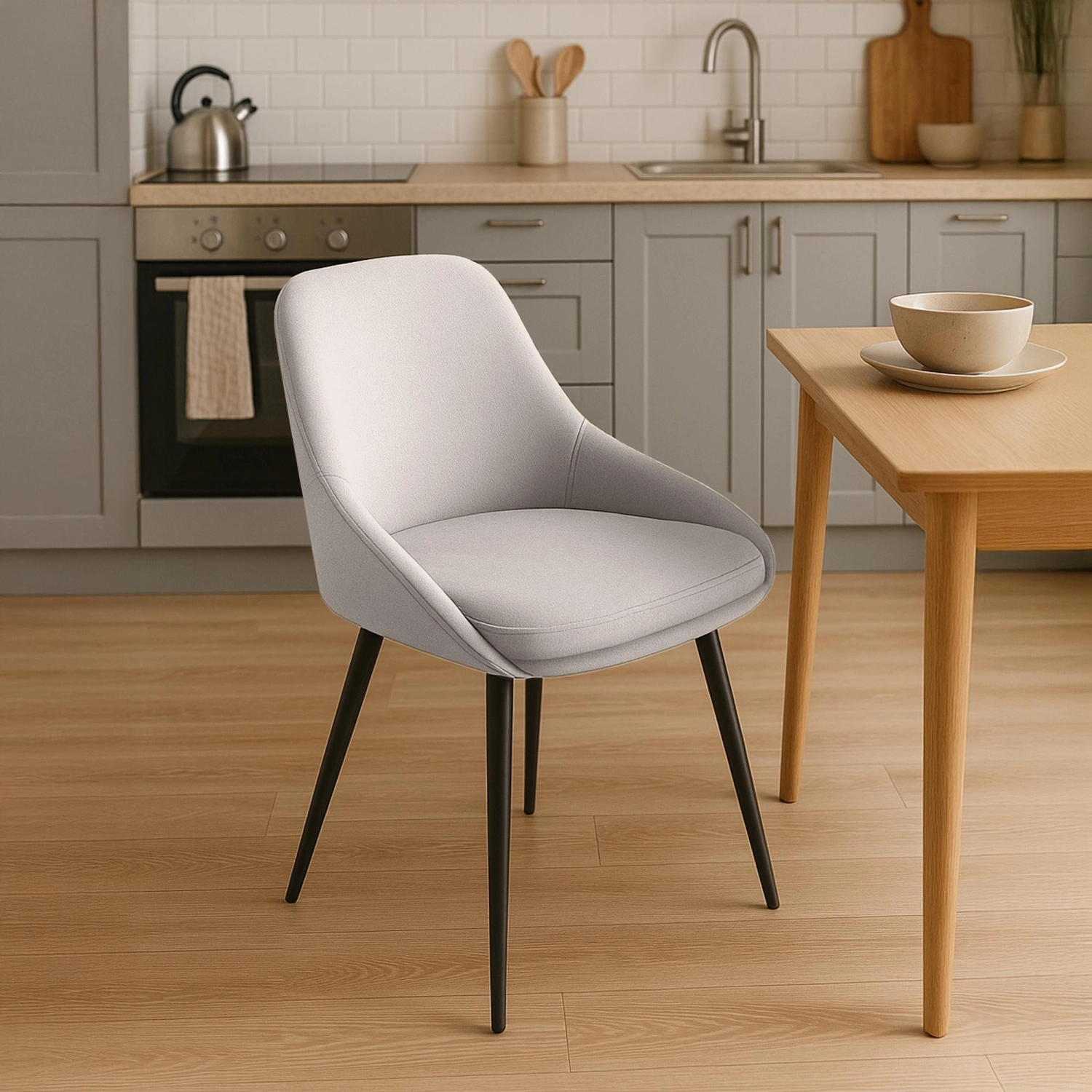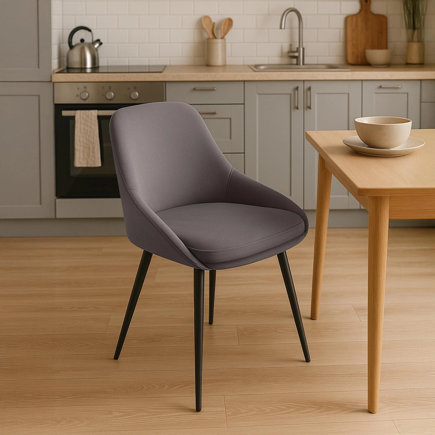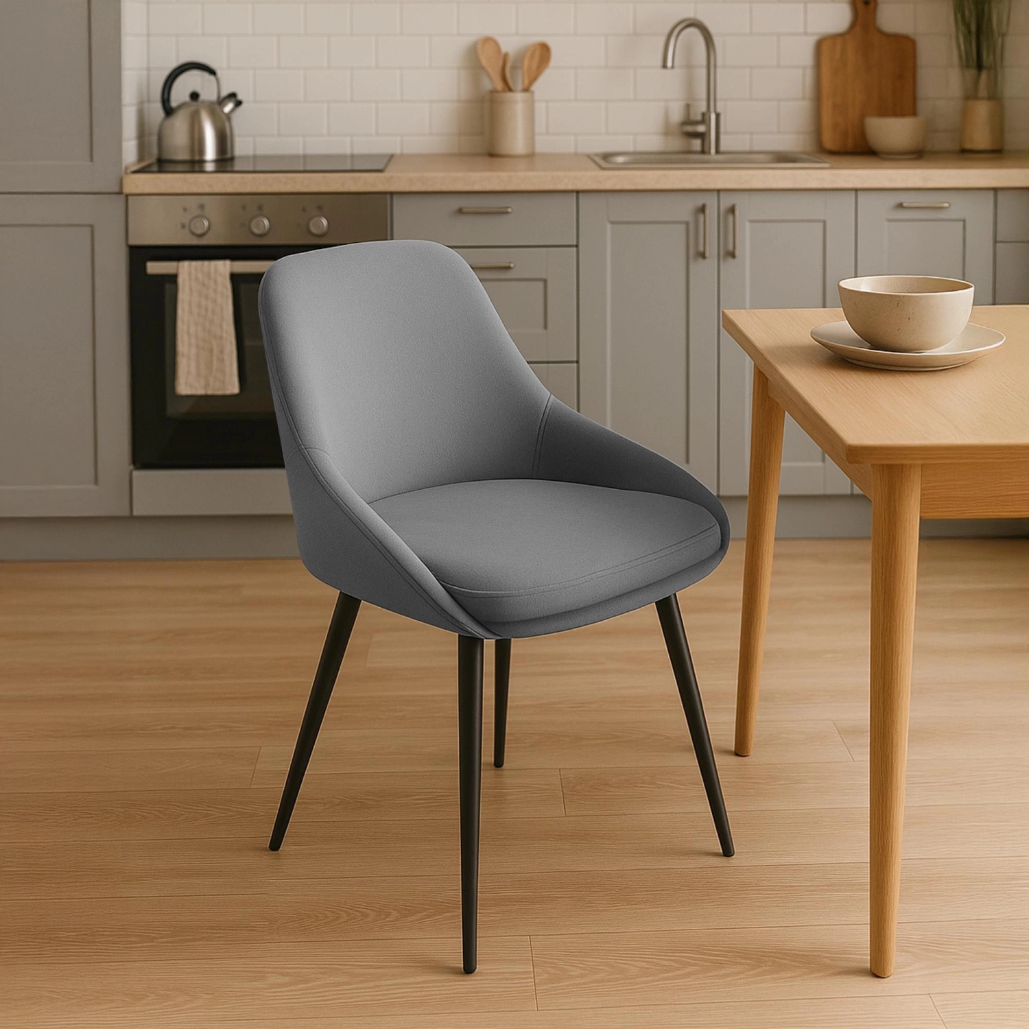 A cadeira Elmira combina conforto e estilo para modernizar a sua sala de jantar. O assento almofadado com estofos em tecido cinzento oferece apoio acolhedor para refeições prolongadas, enquanto o encosto moldado segue a forma do corpo para maior conforto. Os pés metálicos finos acrescentam um toque contemporâneo e garantem estabilidade. Excelente escolha entre as cadeiras para sala de jantar, perfeita para quem valoriza qualidade e design. Versátil e discreta, integra-se facilmente em vários ambientes, desde cozinhas abertas a salas de jantar formais. Fácil de manter e pensada para oferecer funcionalidade e elegância, a Elmira é uma opção prática para renovar o ambiente com personalidade.