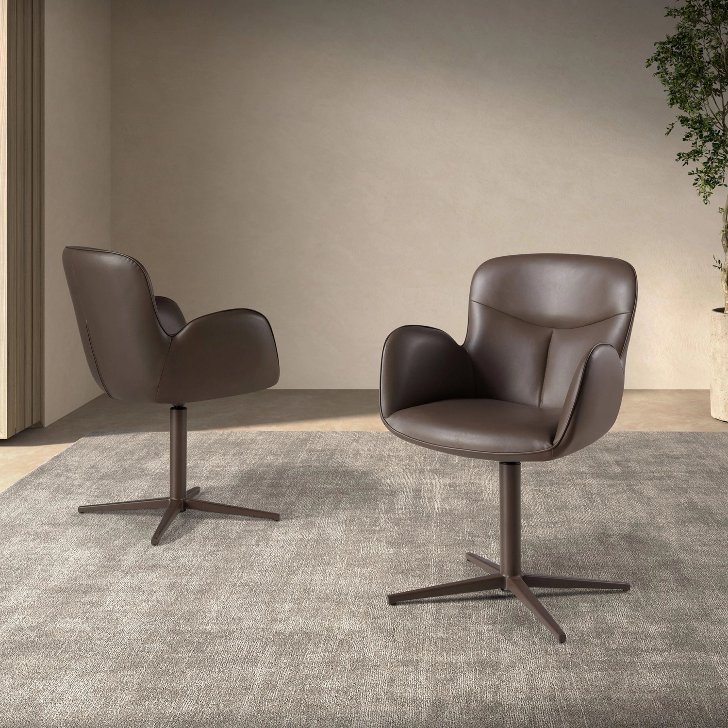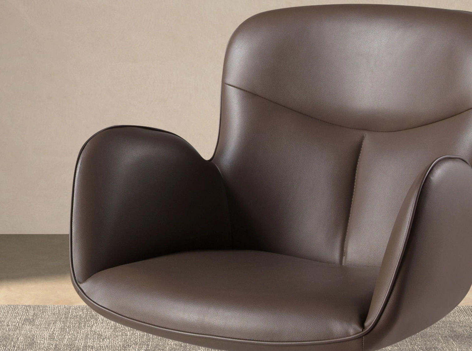 Assento e encosto estofados em sintético cor castanho chocolate.