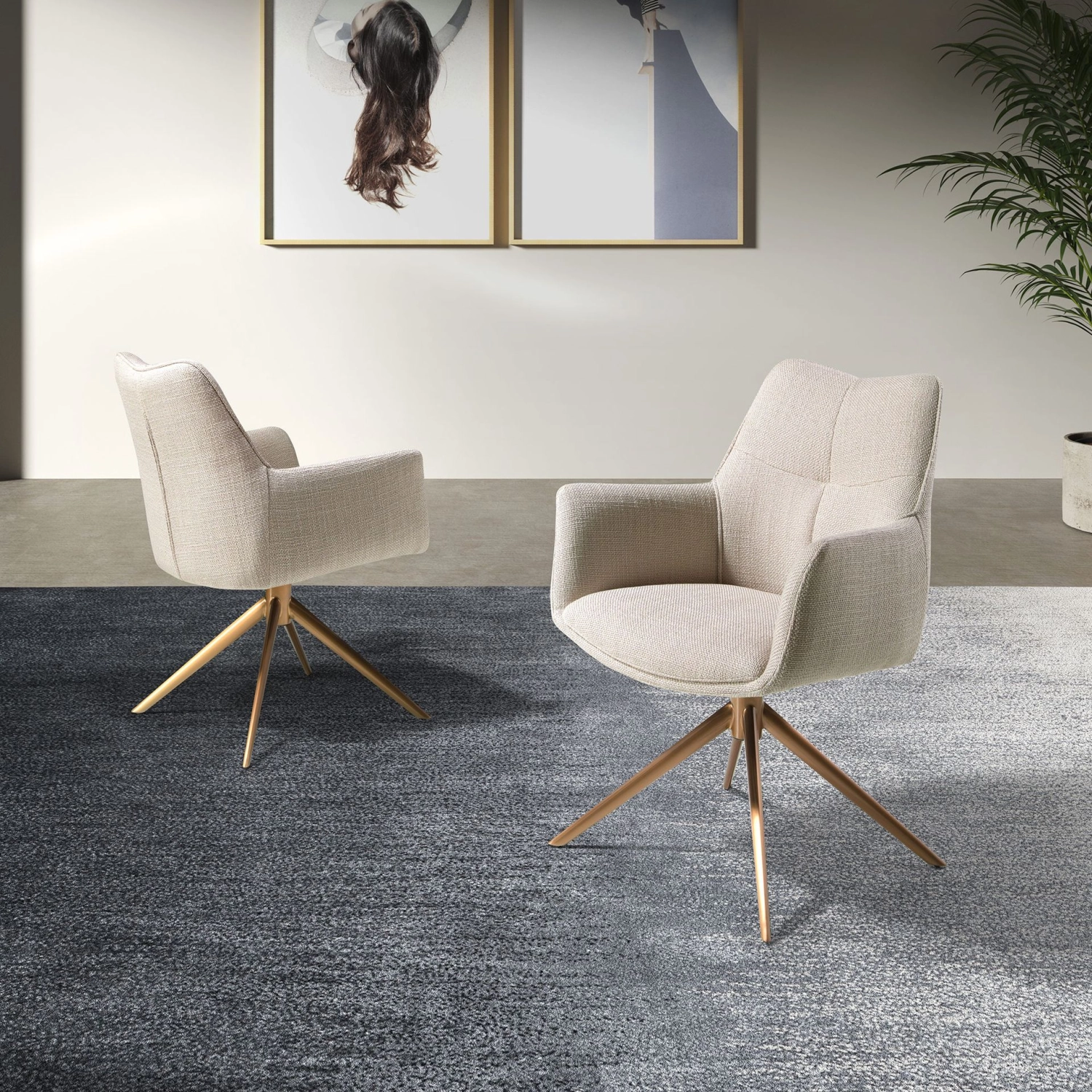 Cadeira giratória Vidal Bege com braços de design moderno.
