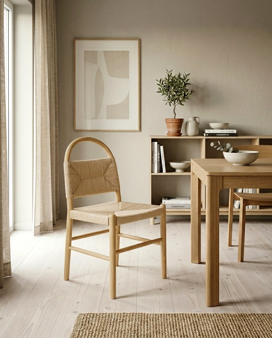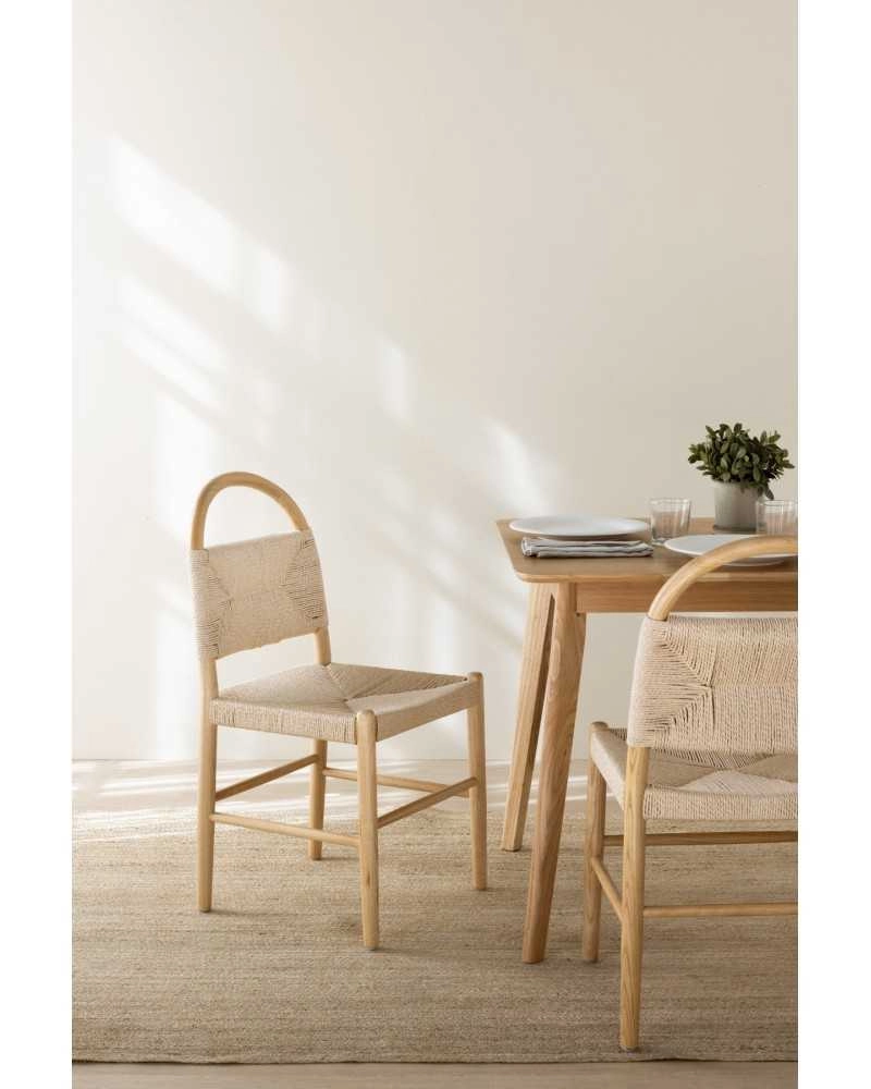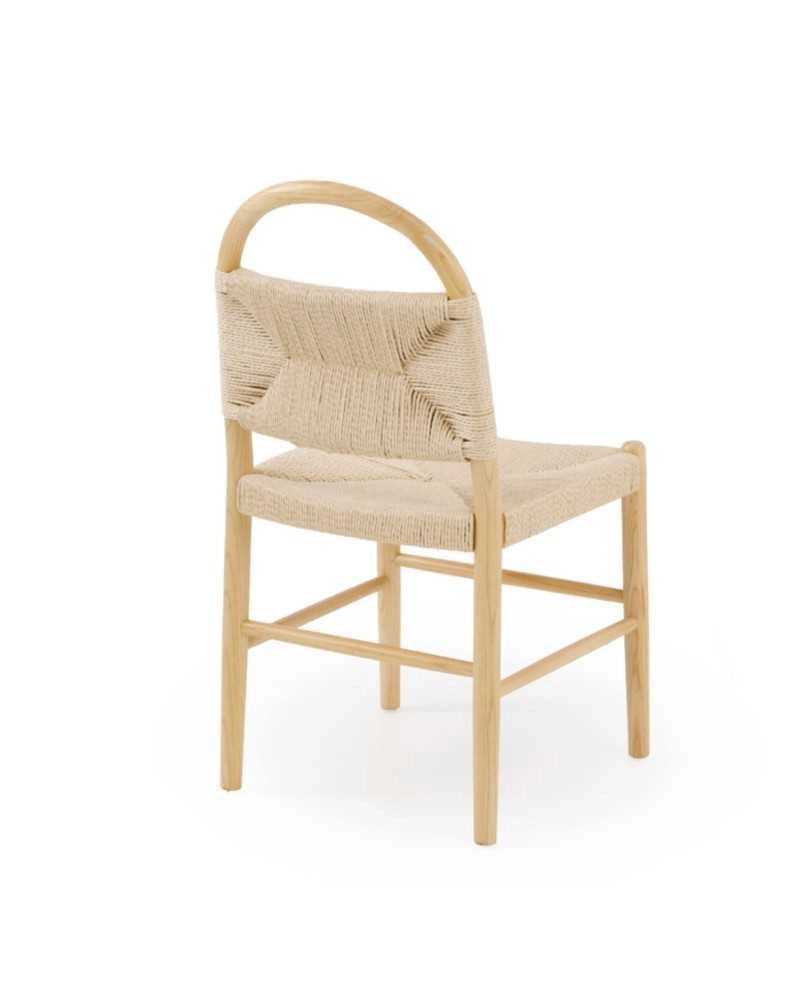 Cadeira com estrutura em madeira de freixo e assento e costa em corda.