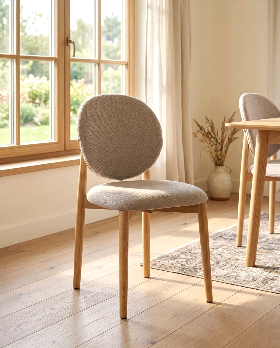 A cadeira Wanda costa redonda tem um design nórdico.