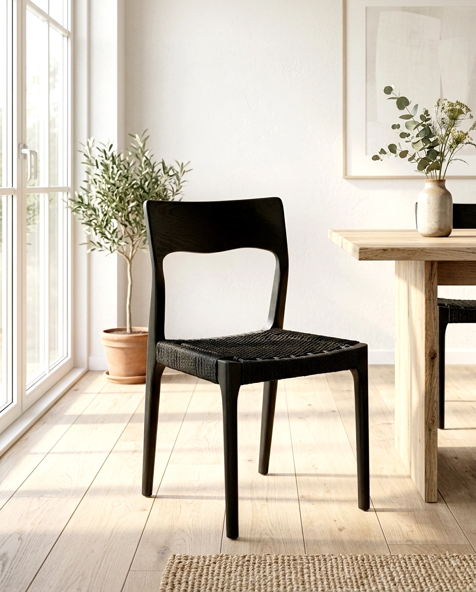 Cadeira Nórdica em madeira de freixo cor preta.