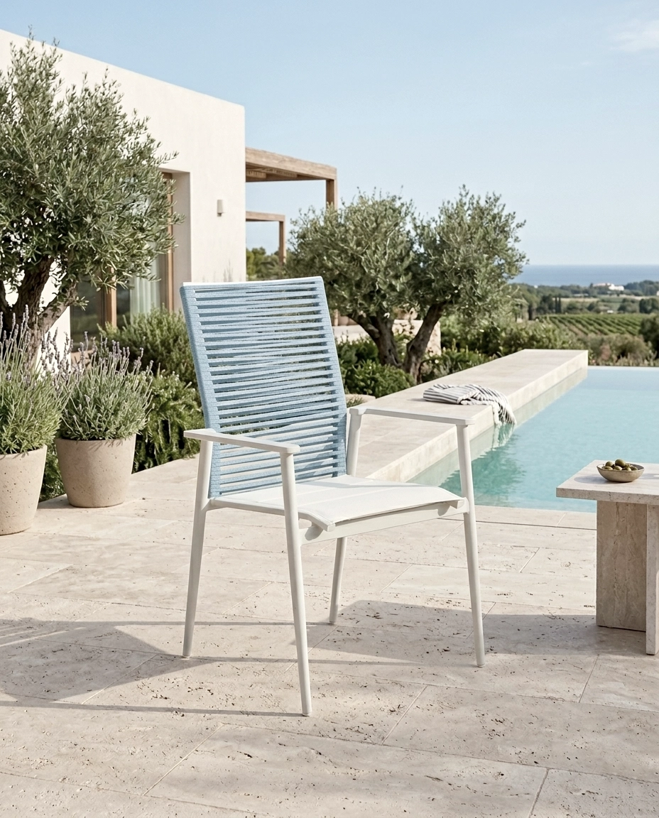 - Braços que favorecem postura relaxada ao ar livre