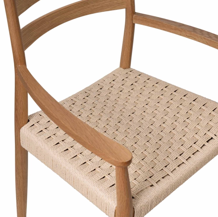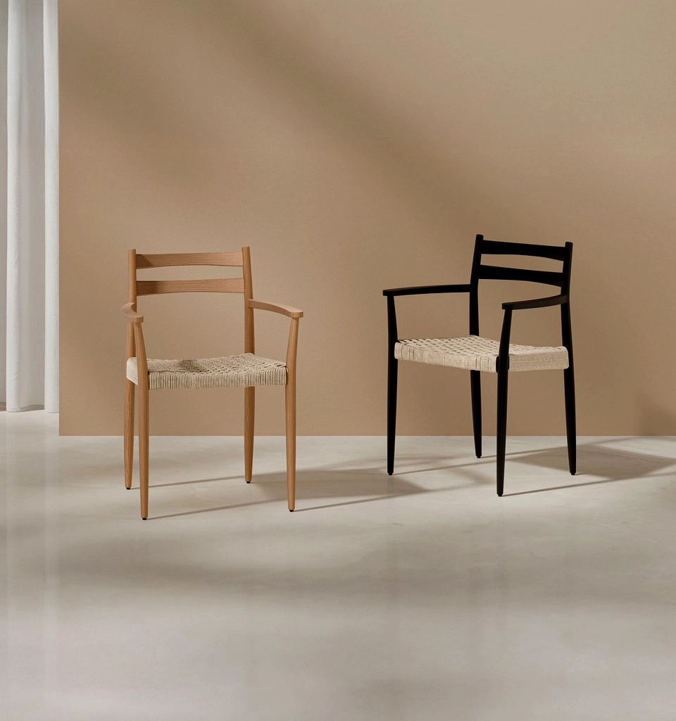 O cadeirão Edna destaca-se pelo seu design natural e sofisticado, ideal para casas que procuram uma abordagem decorativa minimalista e orgânica.