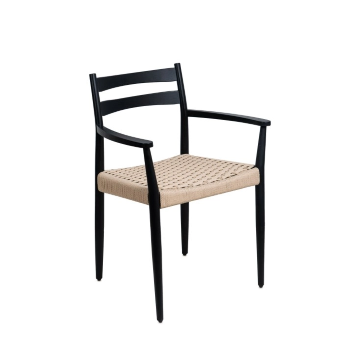 Assento com corda de cor natural, cria um contraste visual equilibrado.