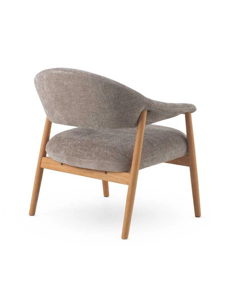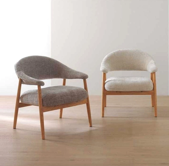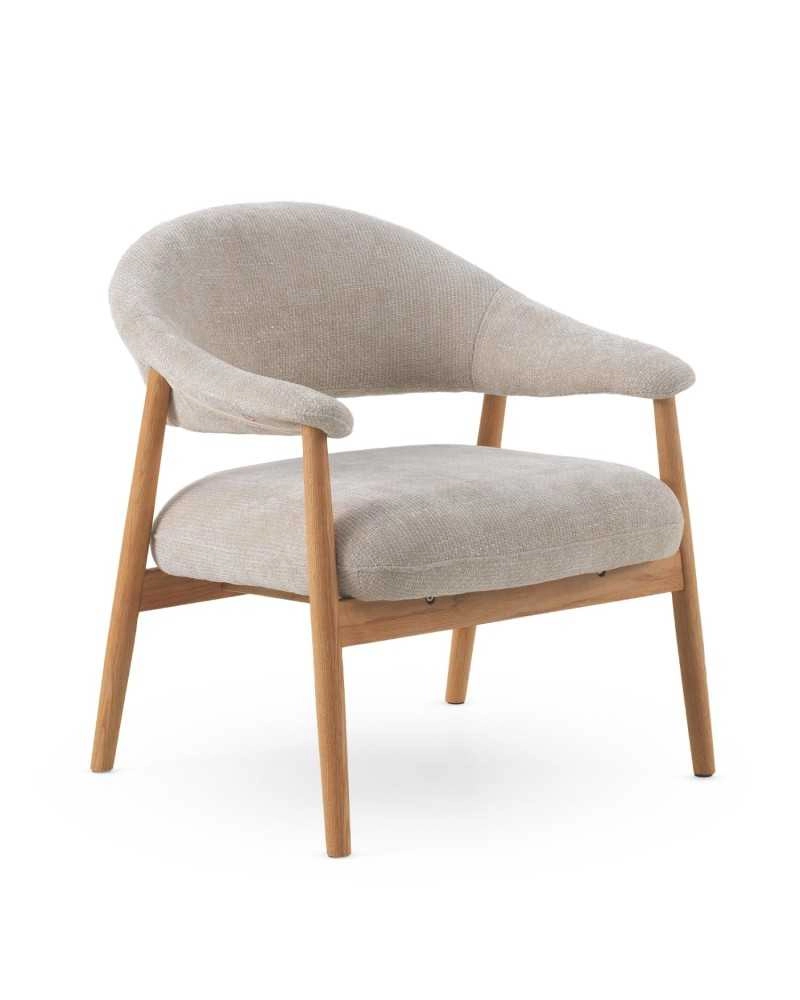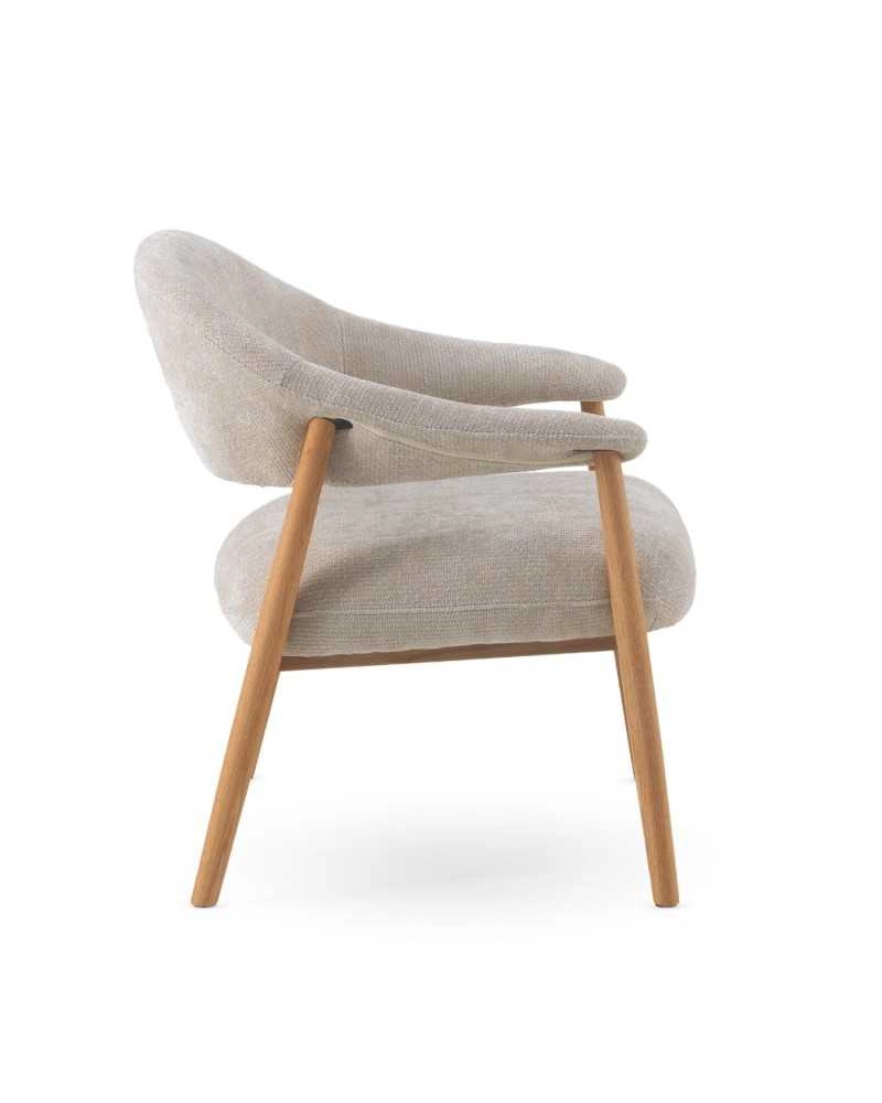 Encosto e o assento, estofados em tecido macio e disponíveis em dois tons neutros de taupe e branco.