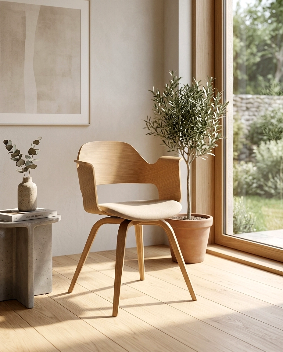 Cadeira Nórdica em folha de madeira Carvalho.