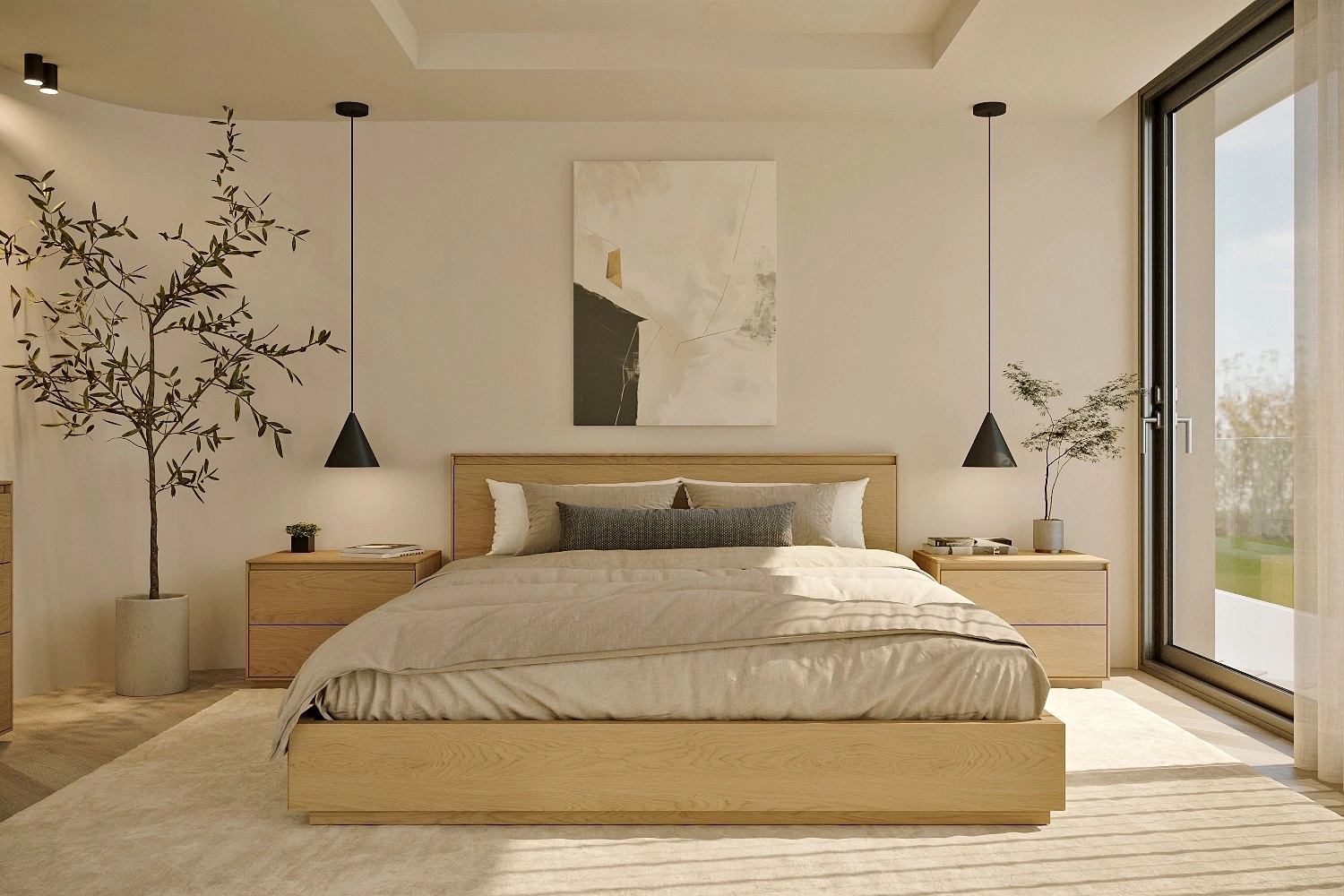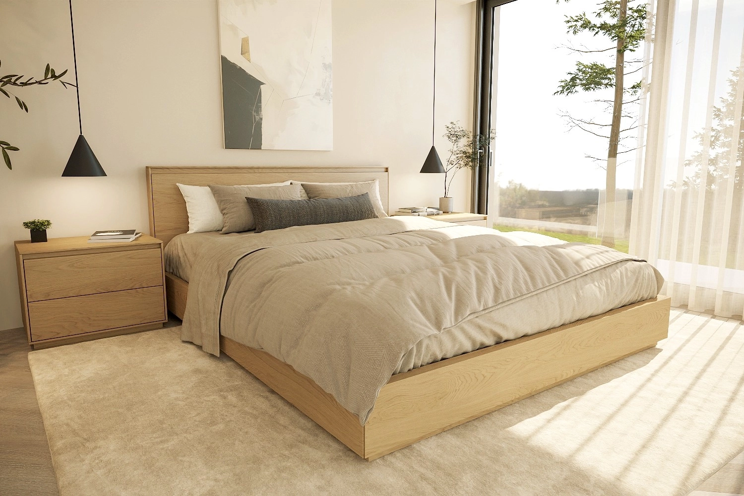 - Design nórdico minimalista que serena o quarto