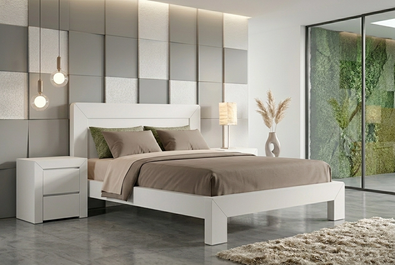 Materiais: Esta cama é fabricado em folha de madeira natural e MDF para lacados.