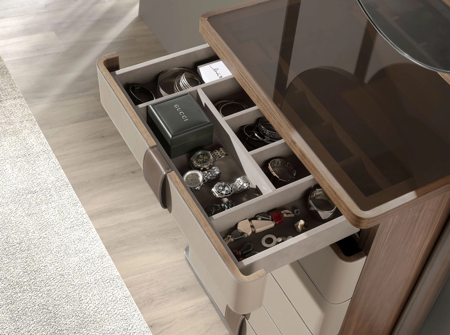 Arrumação com 6 gavetas com sistema de abertura por puxador e sistema de fecho suave.