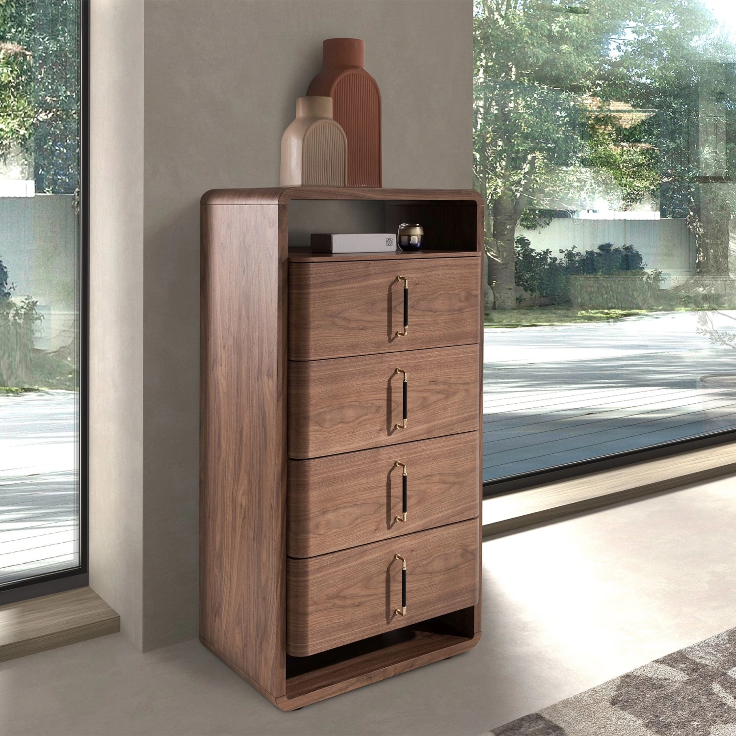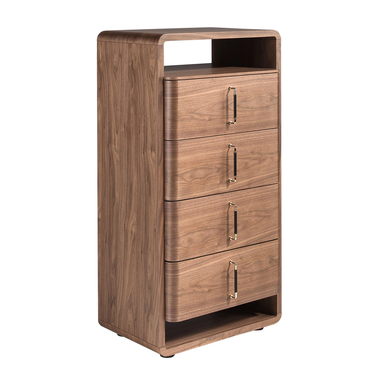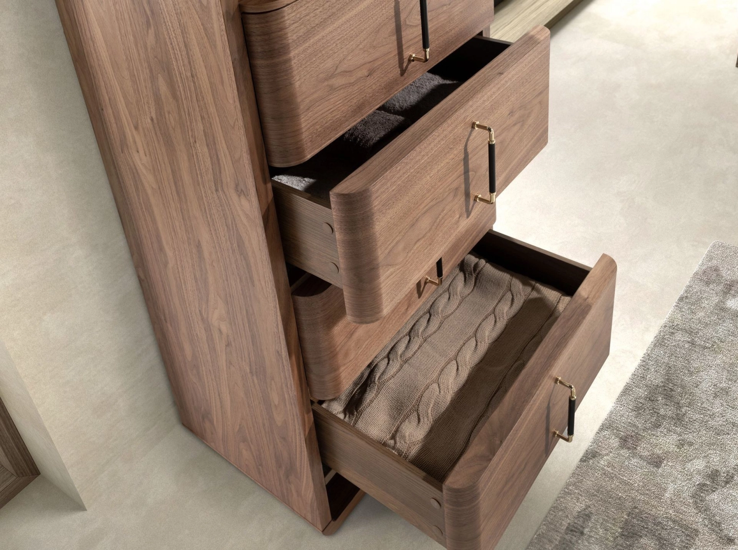 Espaço de arrumação com 4 gavetas com sistema de abertura com puxador de lingueta e fecho soft-closing.