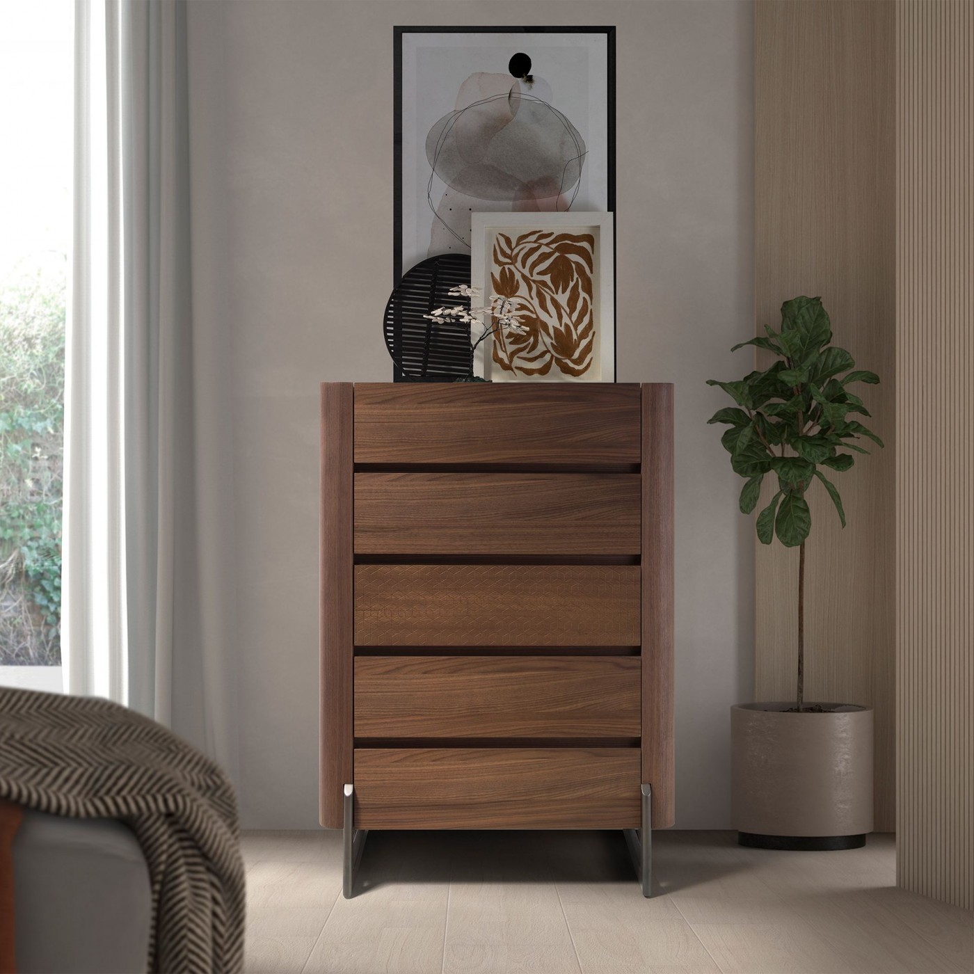 Com 5 gavetas com sistema de abertura por puxador e fecho suave.