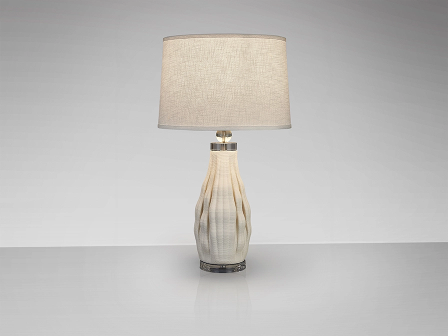 Candeeiro de mesa em cerâmica com acabamento branco.