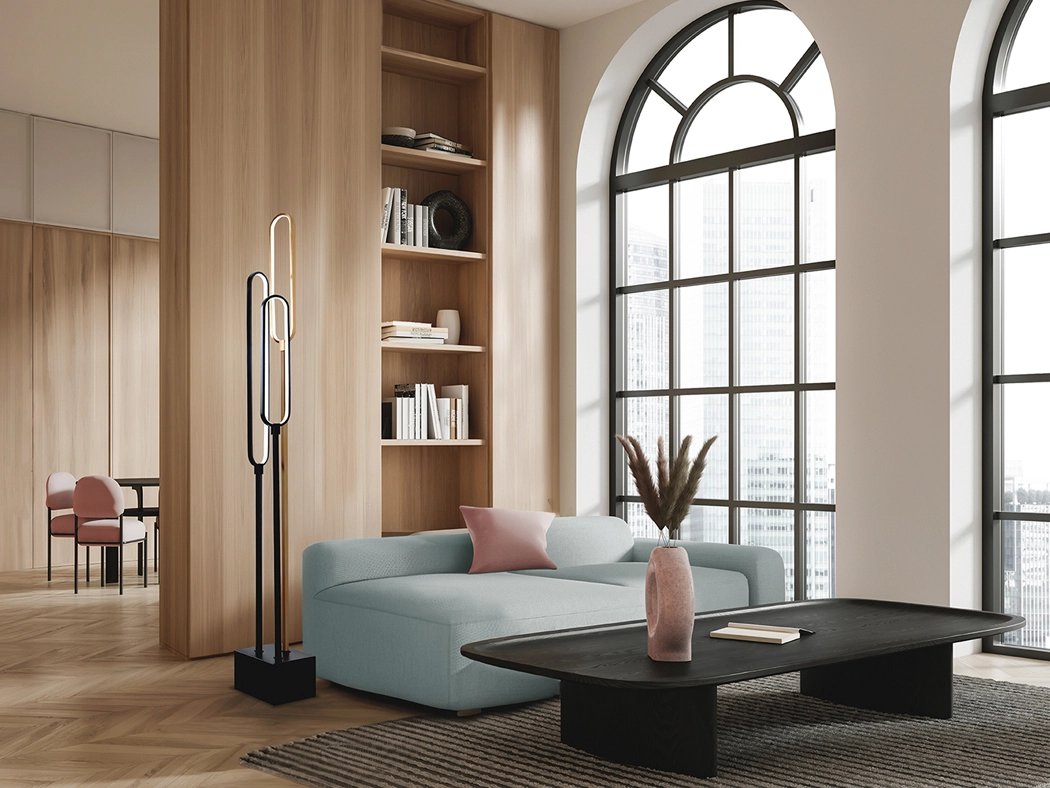 - Iluminação suave que valoriza mobiliário e texturas