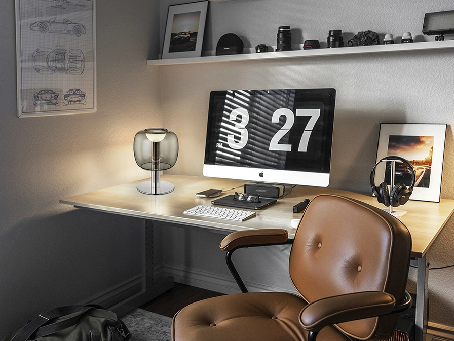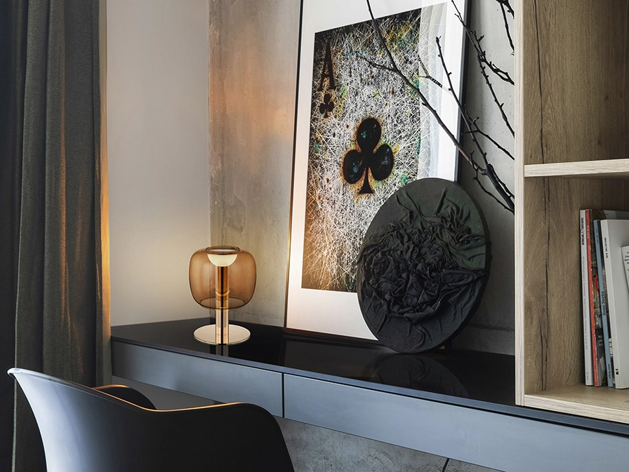 Abajur de vidro soprado acabamento smoke ou ambar.