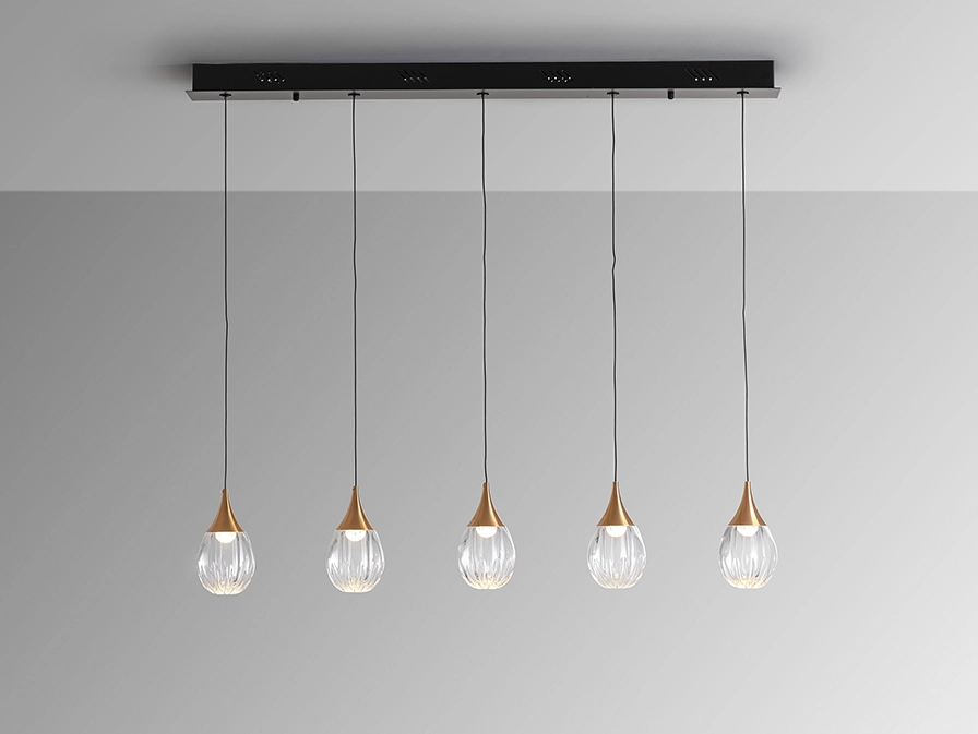 O candeeiro de teto Corina 5l traz elegância contemporânea e funcionalidade à sua casa com cinco pendentes que criam uma iluminação equilibrada e acolhedora. As cúpulas em vidro realçam a qualidade da luz e os detalhes metálicos acrescentam um toque sofisticado que se integra facilmente a interiores modernos. Ideal para colocar sobre mesas de jantar ou ilhas de cozinha, este candeeiro concentra a luz onde é mais necessária, valorizando refeições e momentos em família sem ocupar espaço no chão. Os fios suspensos visíveis permitem um efeito linear e harmonioso que complementa ambientes abertos e zonas de convívio. A presença de múltiplos pontos de luz possibilita que a peça funcione como elemento decorativo e solução de iluminação ao mesmo tempo, tornando-a multifuncional para diferentes divisões da casa. Fácil de combinar com mobiliário neutro ou acabamentos mais marcantes, o Corina 5l contribui para criar uma atmosfera convidativa e bem iluminada, melhorando a experiência diária e destacando pontos focais do ambiente. Excelente escolha para quem procura estilo e conforto luminoso.