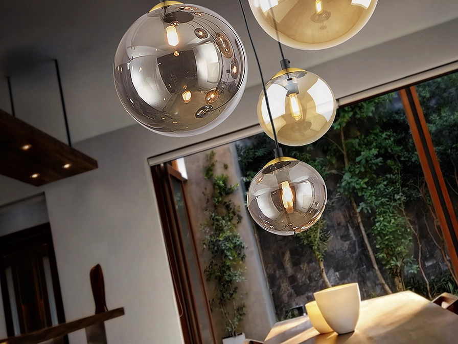 - Globos de vidro com tons fumados e âmbar