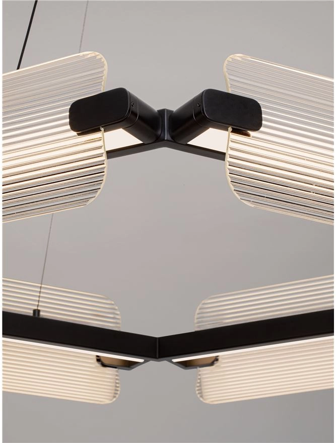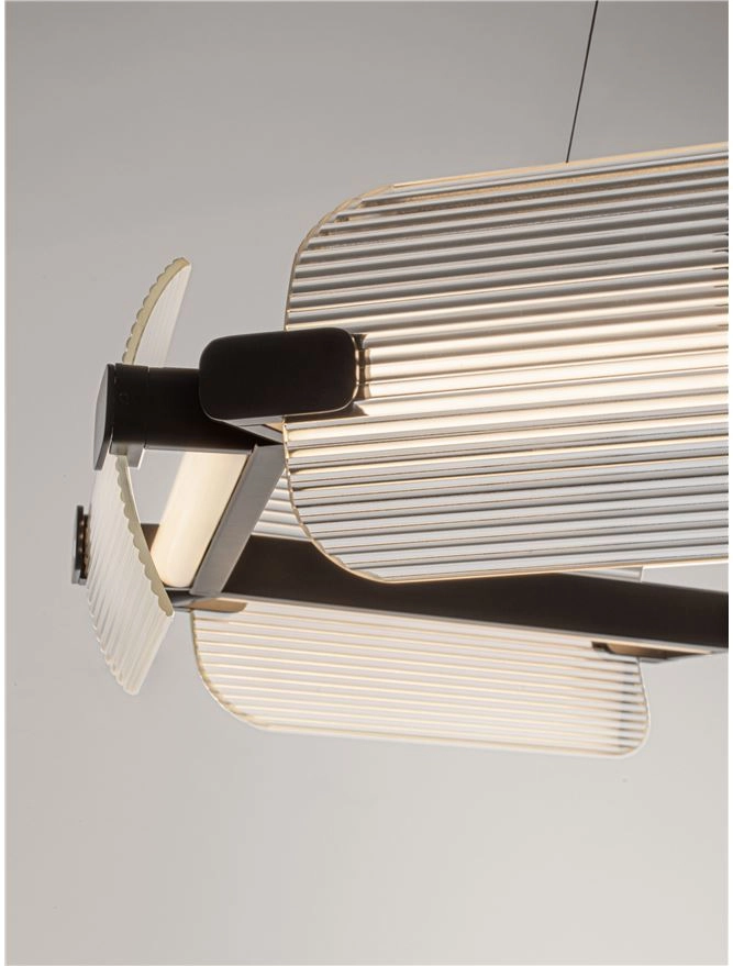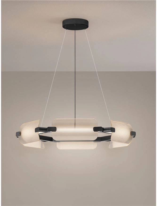 Na sala de jantar o ideal é que fique centrado sobre a mesa de jantar. A altura correta é crucial: cerca de 75 a 90 cm acima do tampo da mesa para não bloquear a visão nem encandear.