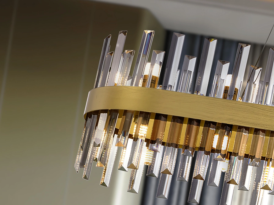 - Detalhes em cristal criam reflexos luminosos sofisticados