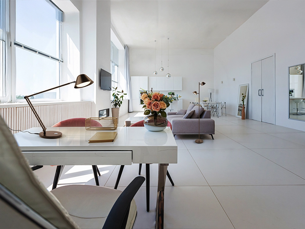 - Design contemporâneo que integra escritórios e quartos