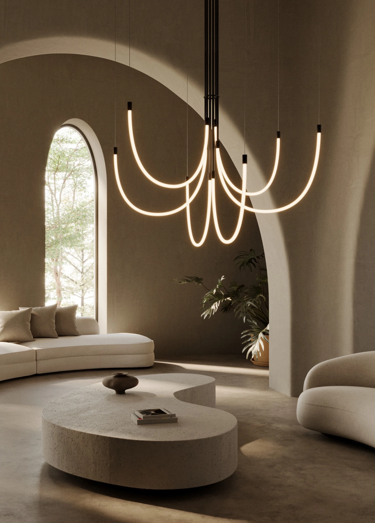 Candeeiro suspenso cram transforma qualquer sala de estar numa zona acolhedora e contemporânea, criando um ponto focal elegante e escultural. As linhas curvas e a iluminação suave valorizam a decoração sem competirem com ela, oferecendo ambiente ideal para convívio e relaxamento. Perfeito para espaços com pé direito alto ou acima de mesas de centro, realça texturas e cores da divisão e proporciona uma atmosfera convidativa durante a noite. Fácil de integrar em interiores modernos e minimalistas, este candeeiro acrescenta personalidade sem complicações e eleva a estética do espaço com presença marcante e iluminação envolvente.