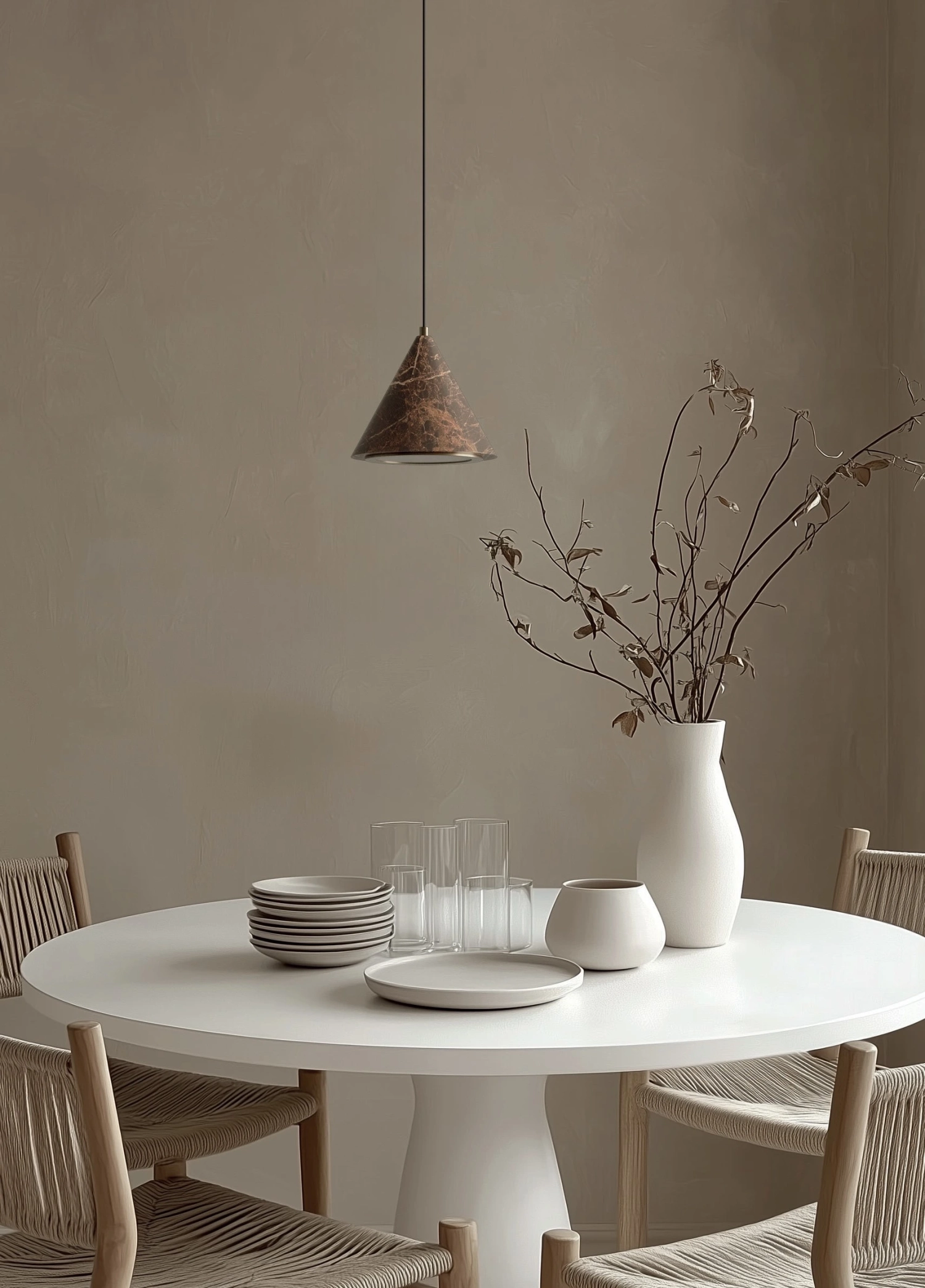O candeeiro suspenso iconic combina uma silhueta cónica com um acabamento texturado que aporta charme natural ao espaço. Ilumina a mesa de jantar com luz direcionada que realça a loiça e cria um ambiente acolhedor para refeições e conversas. A tonalidade terrosa integra-se com facilidade em decorações contemporâneas e escandinavas, valorizando superfícies claras. Funciona como peça central que atrai o olhar sem dominar o ambiente, oferecendo uma solução estética que junta funcionalidade e atmosfera sofisticada. Ideal para quem procura um ponto de luz elegante e convidativo.