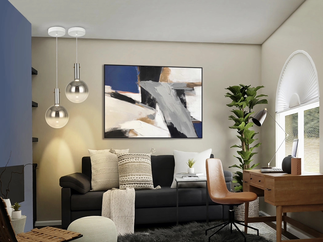 Candeeiro realizado em metal, acabamento branco mate. Abajur de vidro soprado de Ø20 cm, dourado ou cinzento smoke espelhado.
