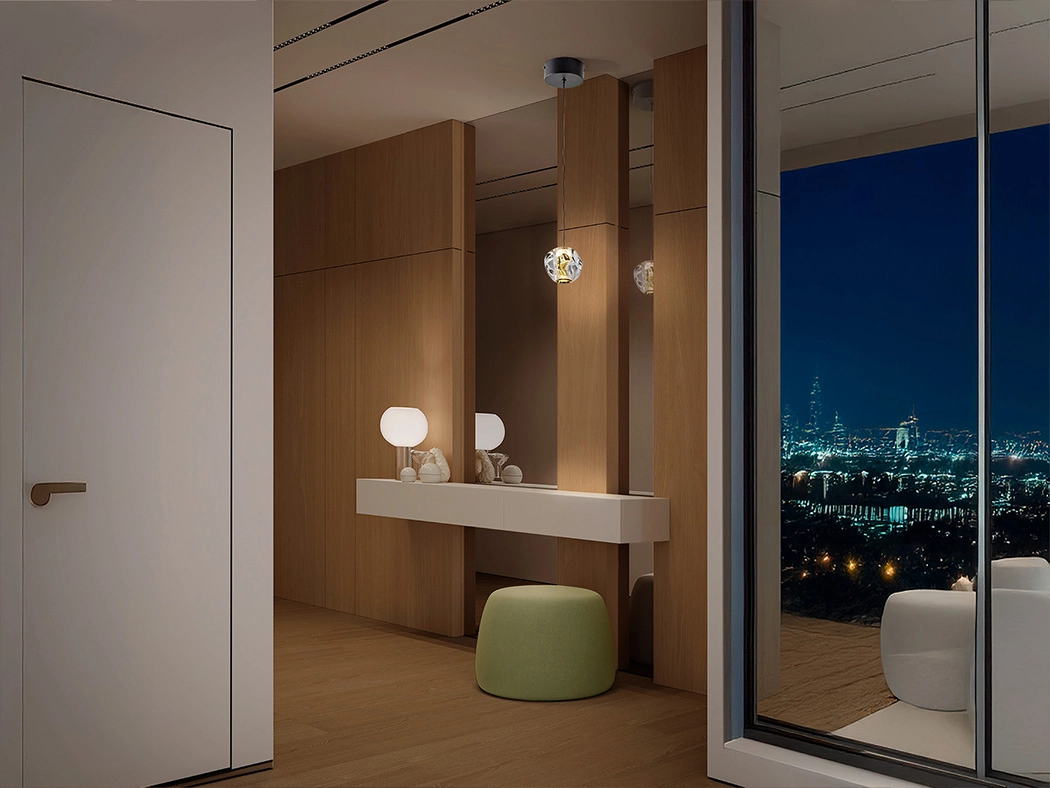 Candeeiro de 1 luz realizado em metal com acabamento preto mate, com detalhes dourados e abajur de acrílico transparente.