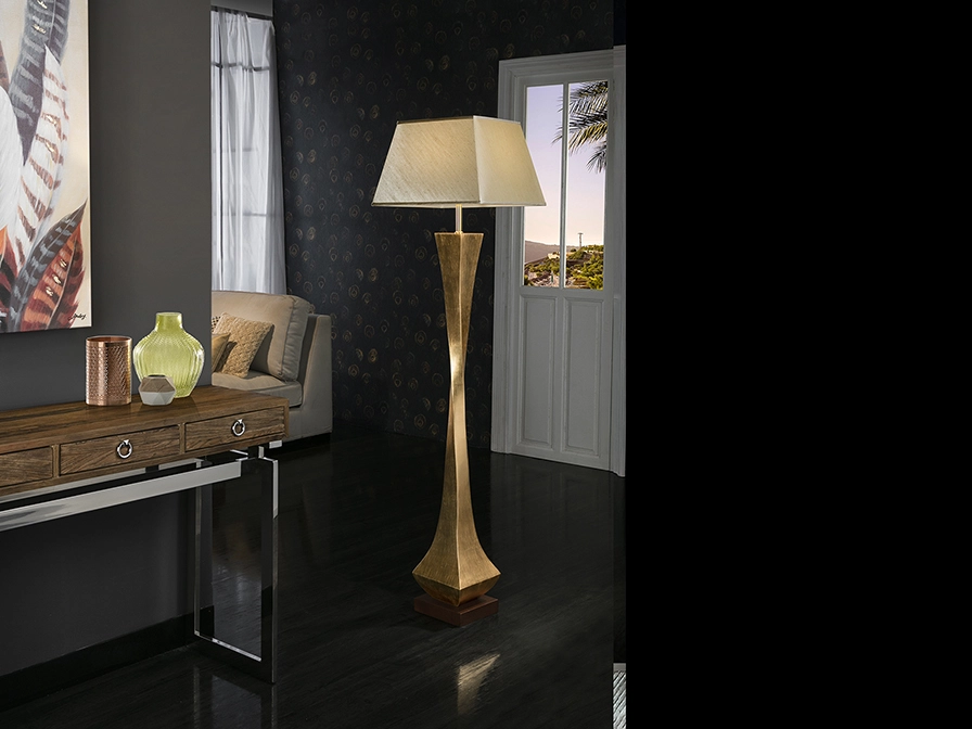 Candeeiro de pé Deco de 1 luz realizado em madeira e metal.