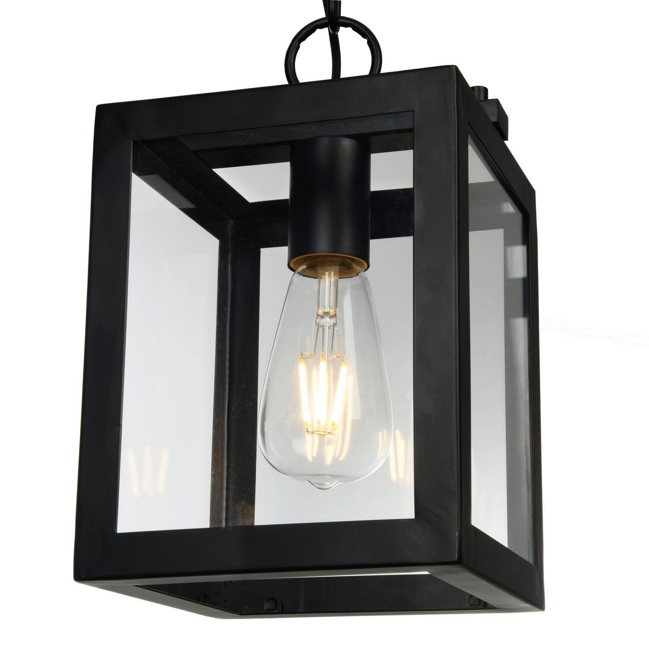 Corpo em metal, acabamento em preto mate. Difusor em placas de vidro transparente.