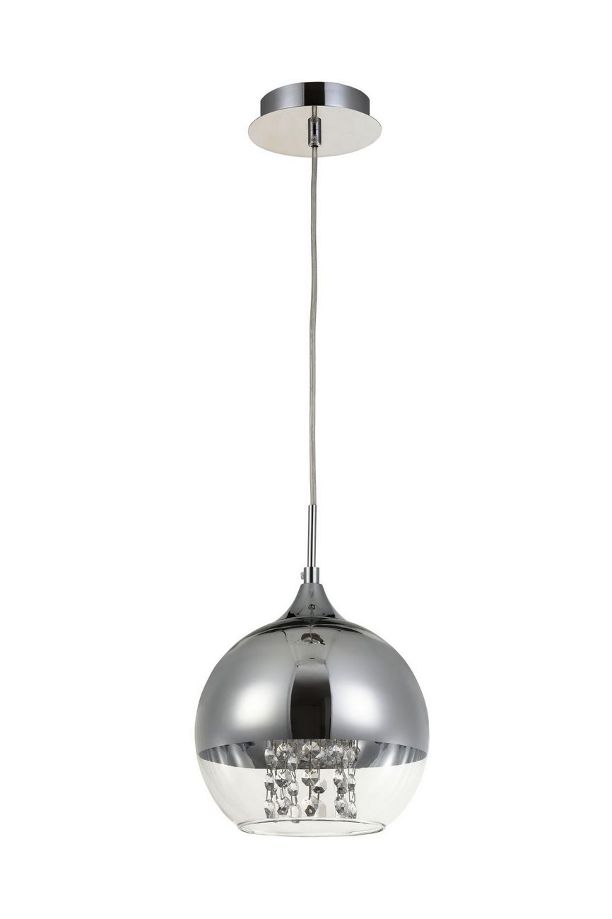 Numerosas facetas de pingentes decorativos de cristal projetam reflexos coloridos na superfície brilhante da esfera de vidro. Os acessórios são feitos de metal e pintados em dois tons modernos à sua escolha: cromo e dourado. A altura dos candeeiros pode ser alterada ajustando o comprimento do cabo. A série inclui suspensões de vários diâmetros e um lustre para 5 cortinas, que permite organizar a iluminação central e de zona.