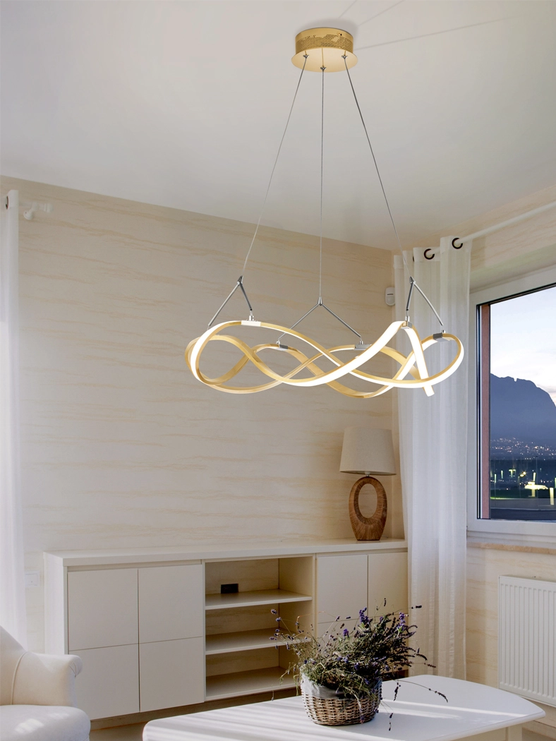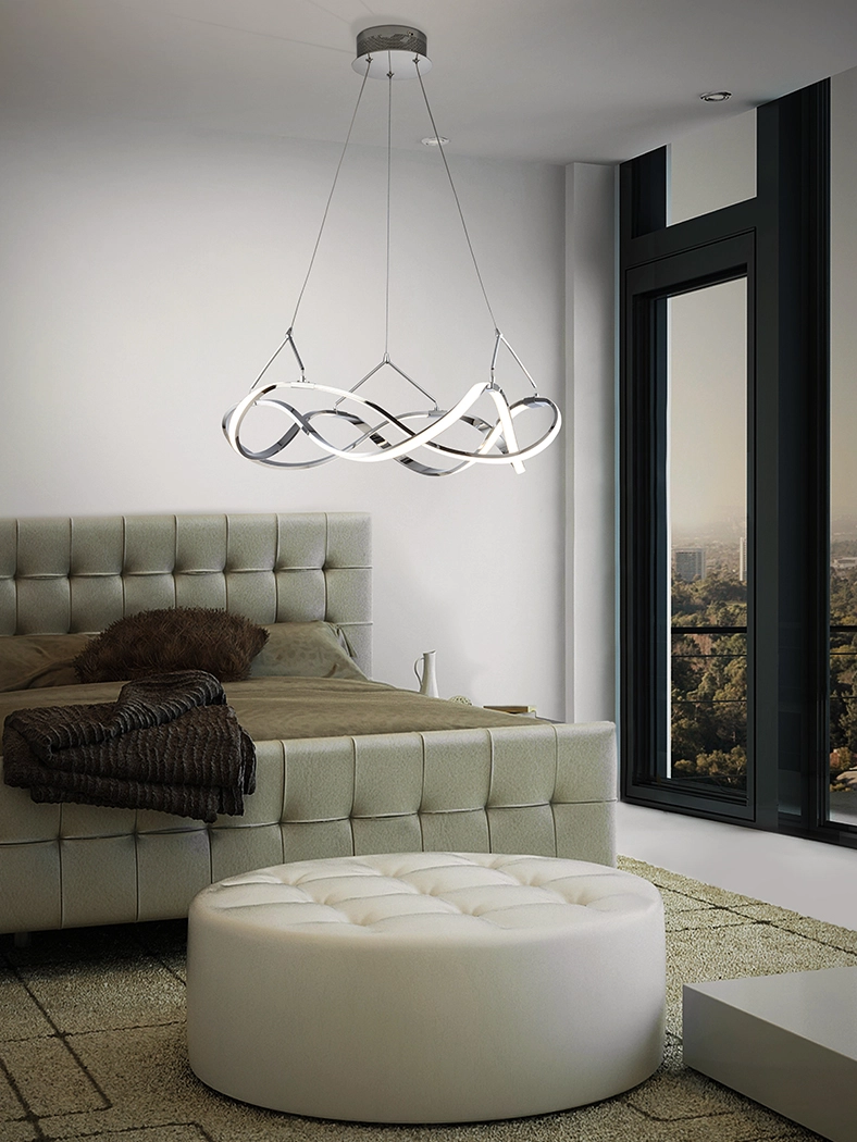 O candeeiro de teto molly combina design contemporâneo com um ar escultural que transforma qualquer espaço numa peça central de destaque. As linhas entrelaçadas criam movimento e profundidade visual enquanto os cabos de suspensão conferem leveza e elegância ao conjunto. A iluminação suave e difusa realça texturas e cores do ambiente sem dominar a decoração tornando o espaço mais acolhedor e convidativo.
